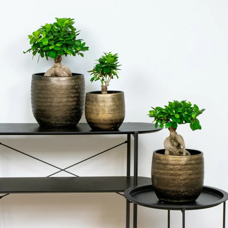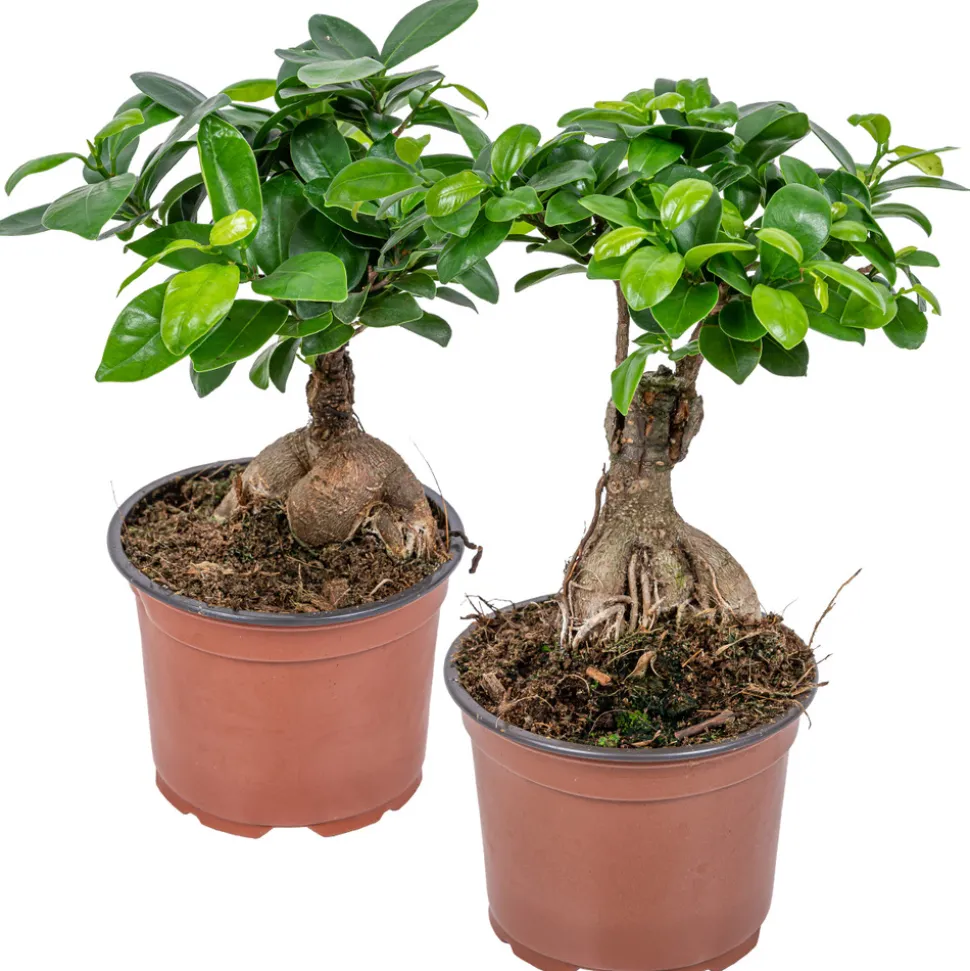 Le Ficus ‘Ginseng’ est le bonsaï parfait pour tous les amateurs de bonsaï débutants. Ce Ficus est l’une des plus petites espèces de ficus et s’intègre parfaitement dans n’importe quel intérieur. Au fil du temps, ce bonsaï développera des racines aériennes. Ces racines épaisses et frappantes sont en partie surélevées au-dessus du sol, créant un ensemble solide. Il peut résister à la taille, vous pouvez donc faire preuve de créativité pour lui donner une forme unique.Caractéristiques- Livré par 2 pièces- La hauteur de livraison de cette plante est de 25-35 cm (mesurée du bas du pot de culture au sommet de la plante)- Livré en pot de culture ⌀12 cm- Facilité d’entretienSe soucier- Eau : Faible besoin en eau : été : 1/3 d’eau 1x toutes les 2 semaines + hiver : 1/3 d’eau 1x toutes les 8 à 12 semaines.- Position : Besoin d’ombre partielle mais ne tolère pas la lumière directe du soleil ? Ensuite, nous recommandons de placer le produit à environ +/- 2 à 3 mètres de la fenêtre, à condition que la fenêtre soit située du côté nord (nécessite 3 à 5 heures d’ensoleillement par jour).- Entretien : Je suis un cultivateur d’entretien facile. Ne m’arrosez pas trop et évitez mes racines – pour qu’elles ne pourrissent pas.Comment expédions-nousGrâce à notre technologie d’emballage intelligente, vos plantes restent en place et arrivent à destination sans dommage. Nous utilisons des emballages spécialement conçus pour les plantes. De cette façon, ils reçoivent de la lumière le plus longtemps possible et les racines, les feuilles et les fleurs de la plante restent protégées pendant leur voyage du producteur à vous.Chaque plante est unique. Les différentes conditions de croissance peuvent conduire à un résultat différent de celui montré sur la photo. Par conséquent, avant d’acheter, vérifiez attentivement si ces plantes conviennent à votre maison ou à votre jardin.