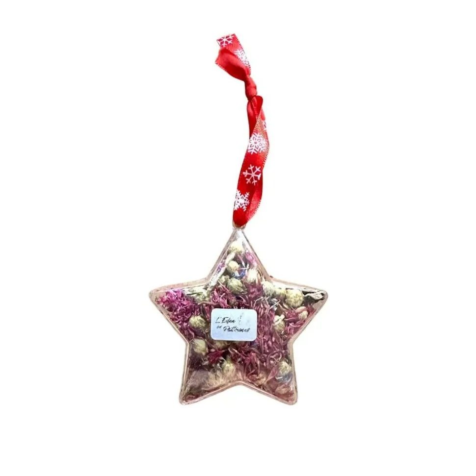 Offrez à votre petit compagnon cette boule étoile à suspendre à votre sapin, remplie de bleuets rouge.