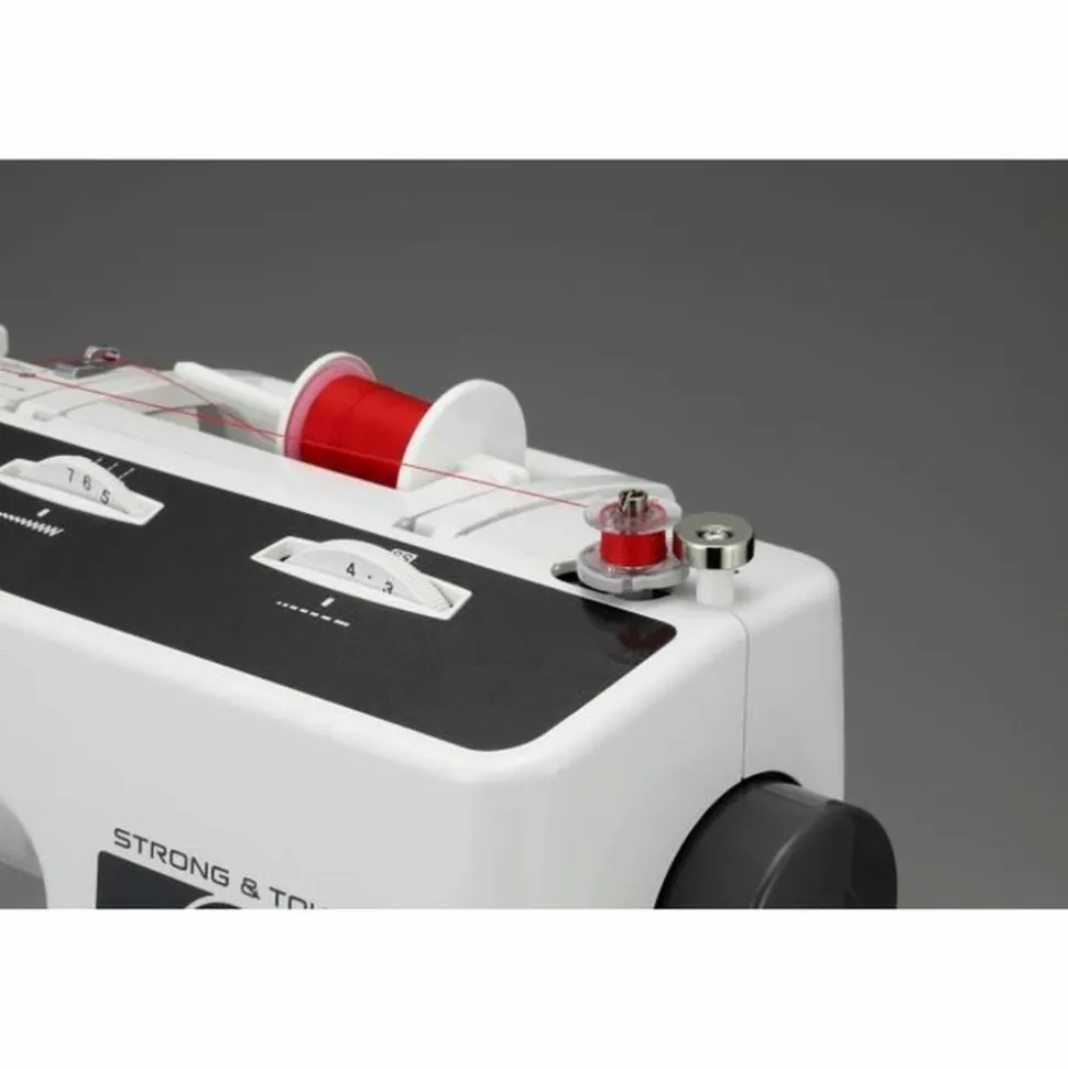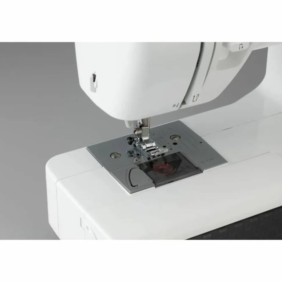 27 pts de coutures utilitaires et décoratifs dont 1 boutonniere 100% auto – Syteme d’enfilage de l’aiguille – Eclairage LED – Bras libre – Réglages de la longeur et largeur des points – Abaissement des 6 griffes – Plaque a aiguille – Crochet en métal – Inclus : Jeu d’accessoires complets + DVD – Garantie : 2 ans