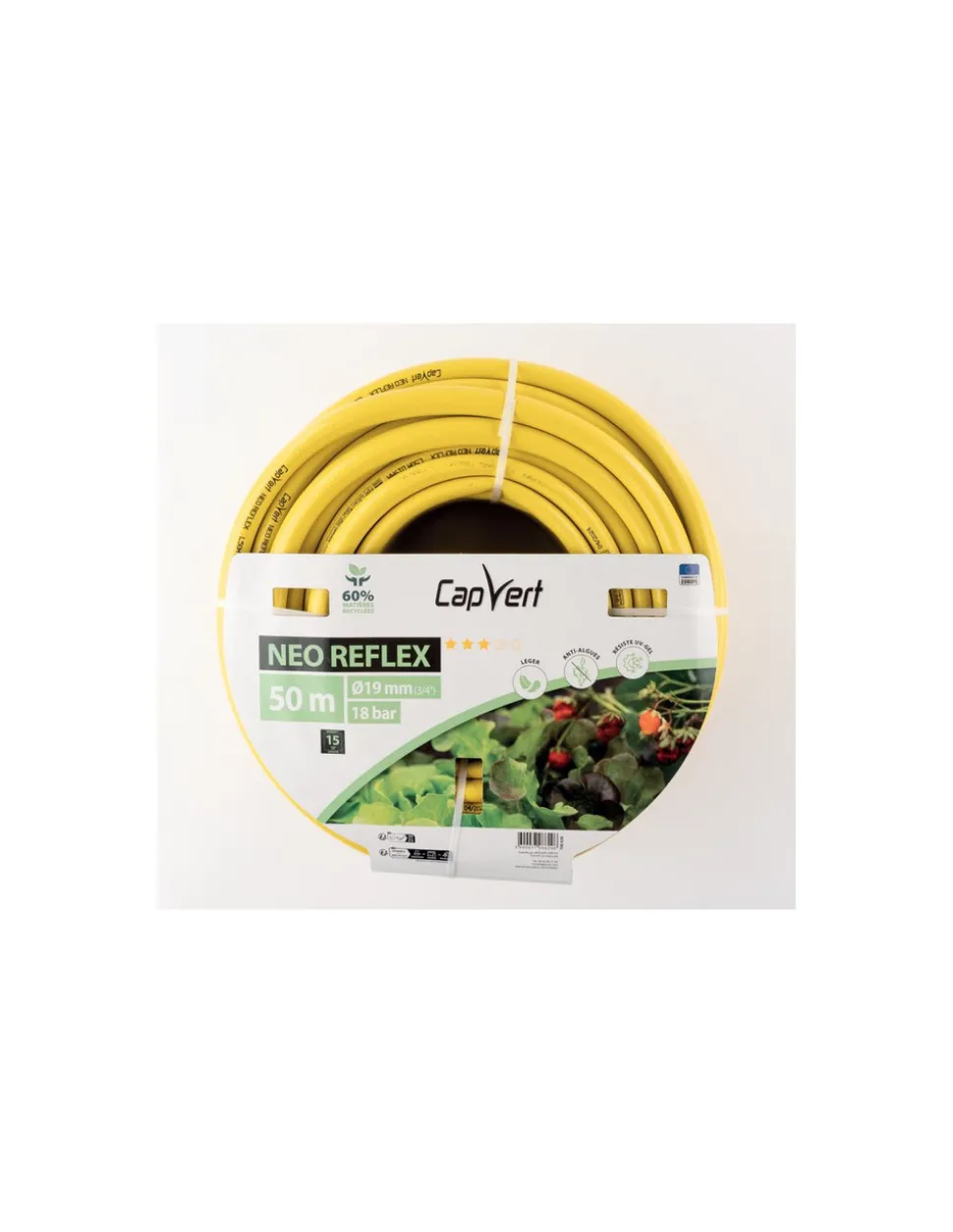 Fabriqués en EU, les tuyaux d’arrosage NEO Reflex ont été conçus par des professionnels soucieux de fournir une qualité unique aux produits et respectueux d’utiliser des matières conformes à la directive REACH et à RoHs. Le tuyau comporte 60 % de matière recyclée.