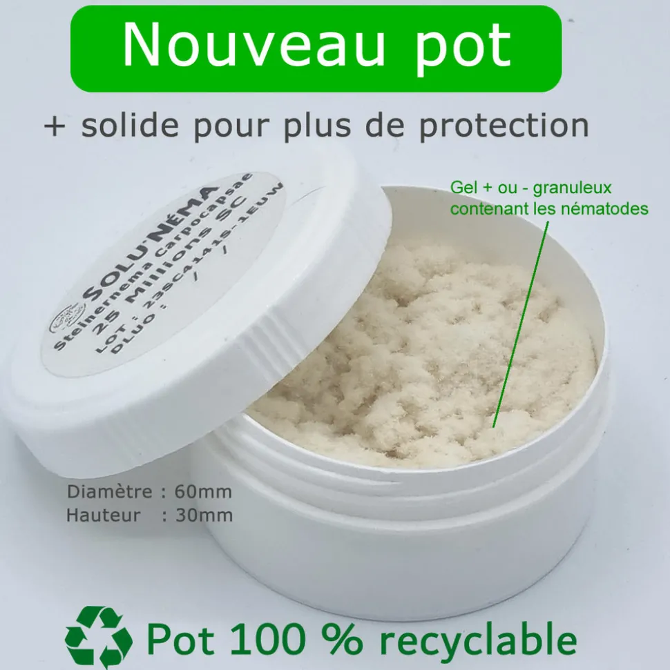 Le Capnode du pêcher, Capnodis tenebrionis, est un coléoptère nuisible principalement connu pour son impact sur les pêchers, mais il peut également affecter d’autres arbres fruitiers à noyau tels que les amandiers, les cerisiers et les pruniers.Les dommages causés par le Capnode du pêcher sont principalement le fait des larves, qui s’attaquent aux racines des arbres fruitiers. Cette alimentation souterraine peut gravement affaiblir ou même tuer les jeunes arbres Les nématodes Steinernema carpocapsae sont des vers microscopiques utilisés comme traitement de biocontrôle contre le capnode du pêcher. Lorsqu’ils sont appliqués, les nématodes recherchent activement leurs proies. Une fois en contact avec une larve, les nématodes pénètrent à travers les orifices naturels de l’insecte et provoquent la mort. L’action des nématodes contre les larves est considérée comme une méthode de lutte biologique efficace et respectueuse de l’environnement, car elle cible spécifiquement le ravageur sans nuire aux autres organismes bénéfiques ni aux humains.