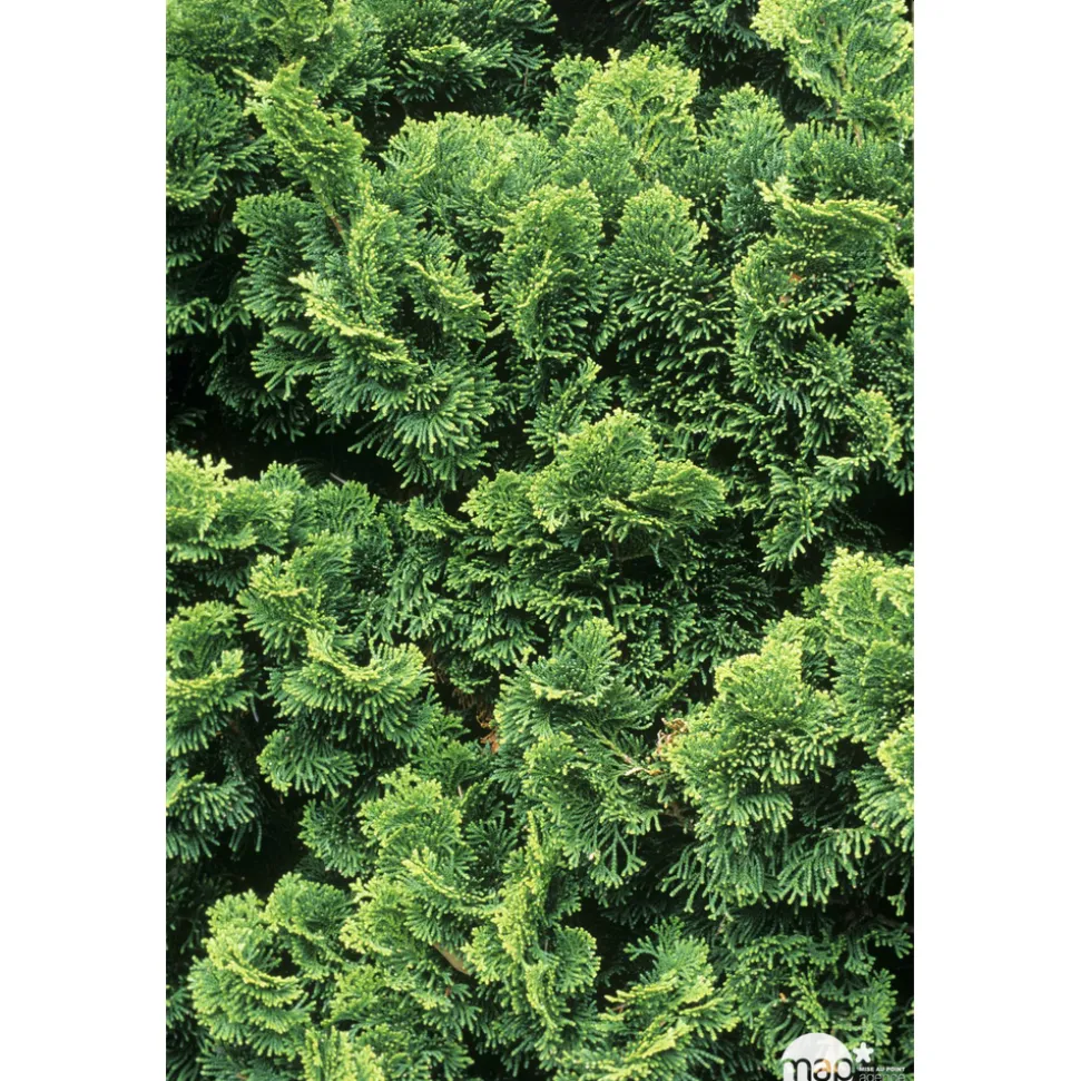 Cet arbuste offre un superbe feuillage avec ses ramules en formes de coquilles très incurvées qui se rassemblent en bouquets au bout de branches denses. Les jeunes pousses claires contrastent joliment sur le feuillage d’un vert sombre. Très compact, globuleux puis conique, ce faux-cyprès nain a une pousse très lente qui lui permet d’être cultivé dans n’importe quel jardin, même très petit.