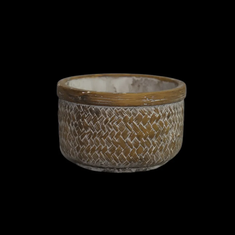 Matériau et avantages: Fabriquée en béton, cette coupe de plantes offre une durabilité exceptionnelle, résistant aux intempéries pour une utilisation en intérieur comme en extérieur. Son motif de tressage en relief ajoute une touche artisanale et rustique à son design, créant un attrait visuel unique.