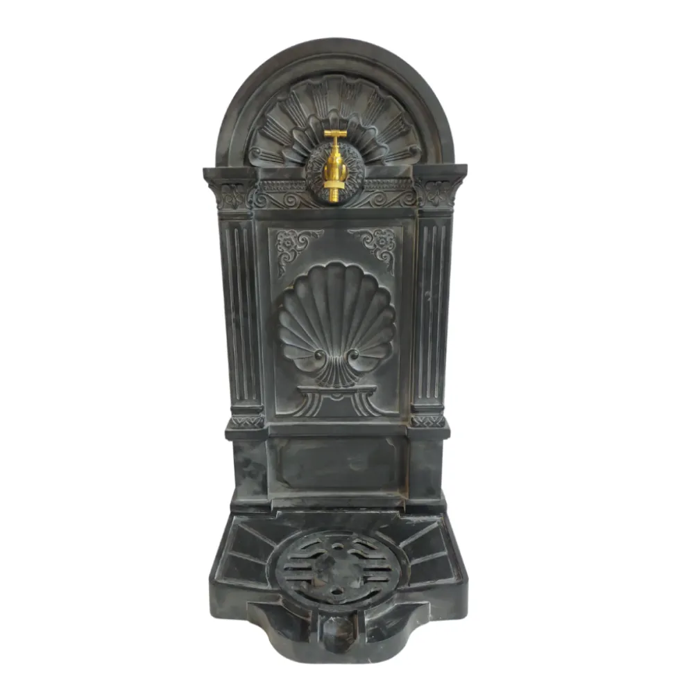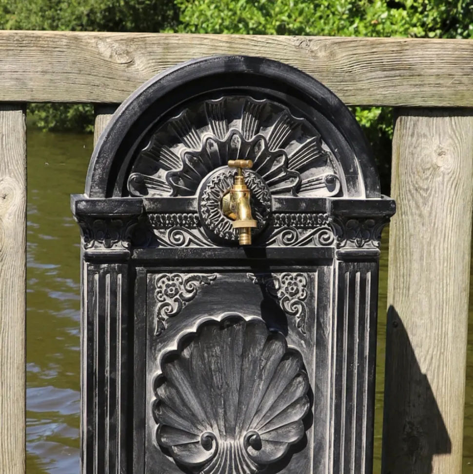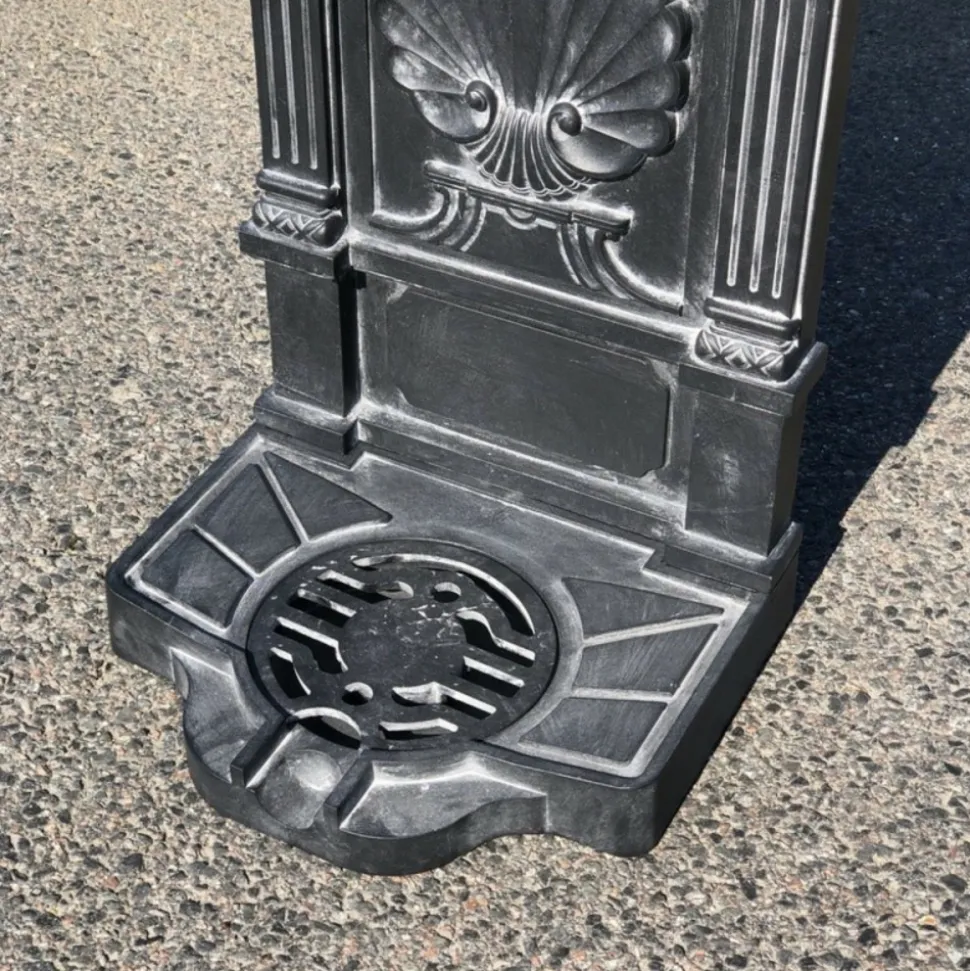 Matériau et avantages : Fontaine de jardin à poser au sol en fonte d’aluminium noire, offrant à la fois robustesse et légèreté pour une utilisation en extérieur. Équipée d’un robinet doré, cette fontaine ajoute une touche d’élégance à votre espace extérieur. La fonte d’aluminium est choisie pour sa durabilité face aux intempéries et sa facilité d’entretien, tout en conservant une apparence authentique.