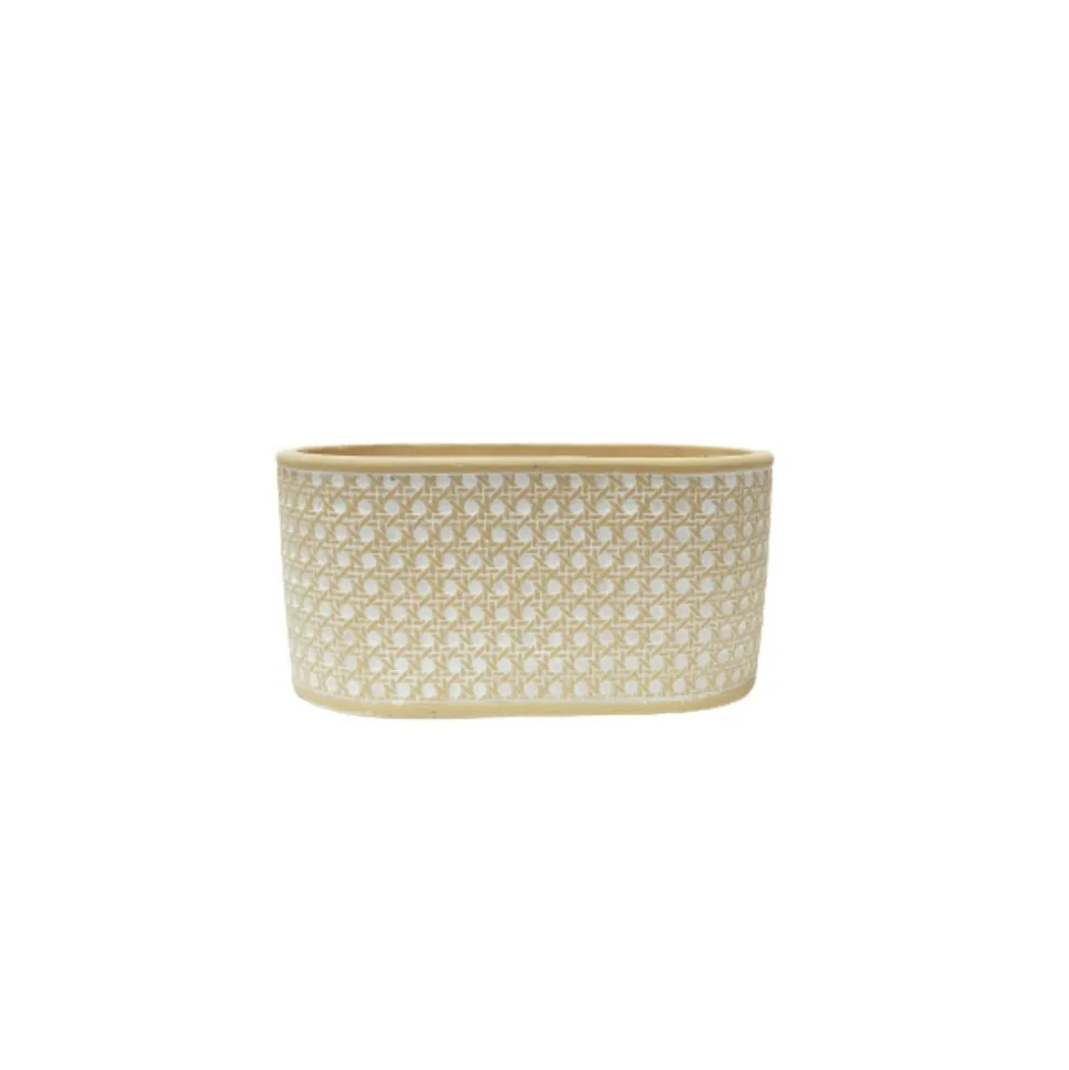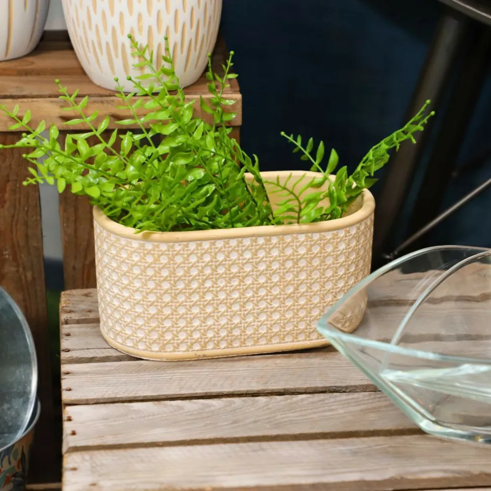 Matériau et avantages : Cette jardinière ovale est fabriquée en béton, garantissant une durabilité exceptionnelle et une résistance aux intempéries, idéale pour une utilisation en extérieur. Son motif en relief lui confère une touche artisanale et rustique, ajoutant du caractère à votre espace vert.