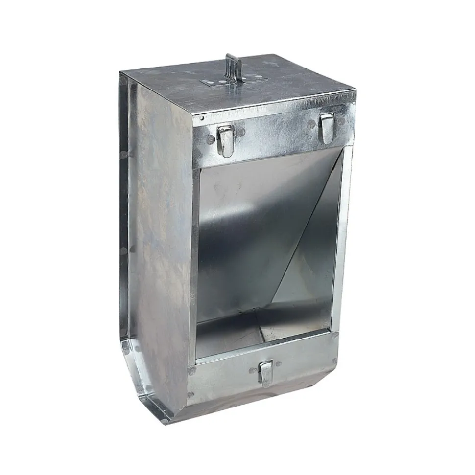 Mangeoire à 1 compartiment, de grande taille, pour lapin ou lapin nain. Cette mangeoire s’installe à l’extérieur d’un clapier ou d’une cage à l’aide de ses fixations. Cette mangeoire, ou trémie, est en métal galvanisé, elle est donc très résistante. Elle est équipée d’un couvercle qui permet de garder la nourriture propre et sèche et de garantir un remplissage facile. Cette mangeoire pour lapin est idéale pour un à 2 lapins ! Caractéristiques de la mangeoire pour lapin à 1 compartiments : Dimensions : hauteur 23 cm, profondeur 11 cm. largeur 13 cm. Nombre de compartiments : 1 Matériel : métal
