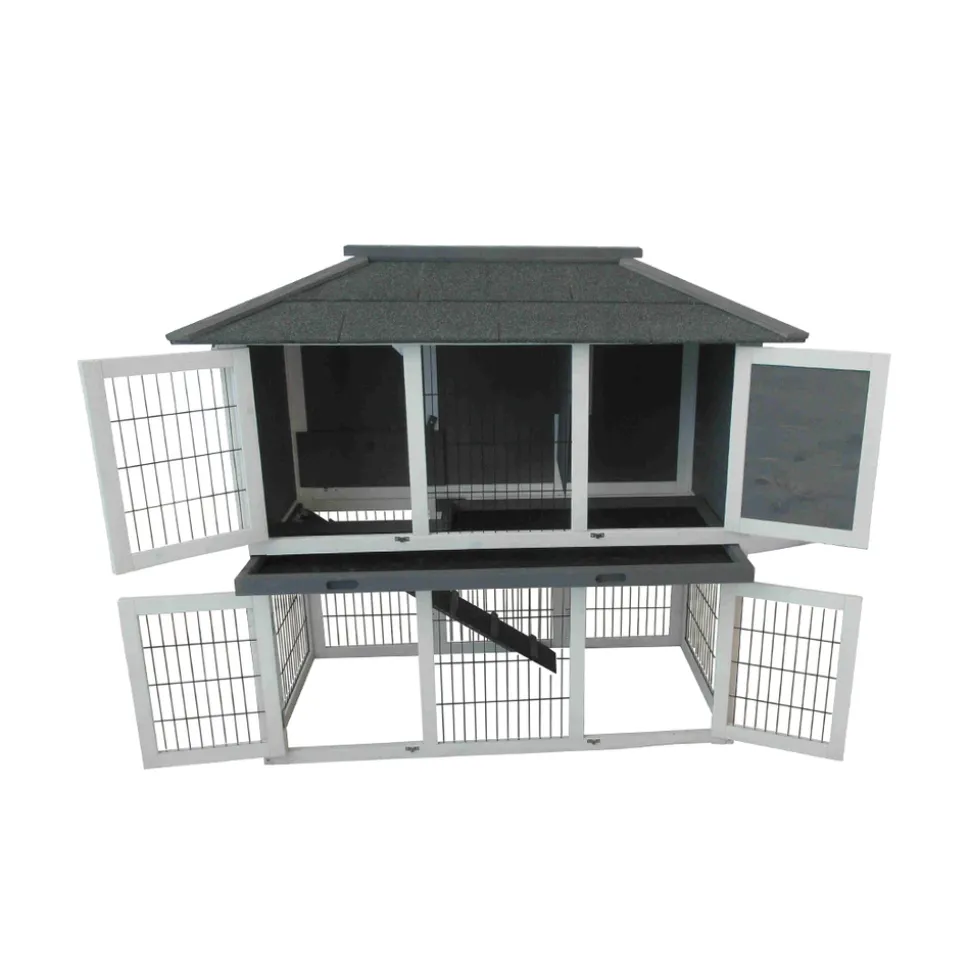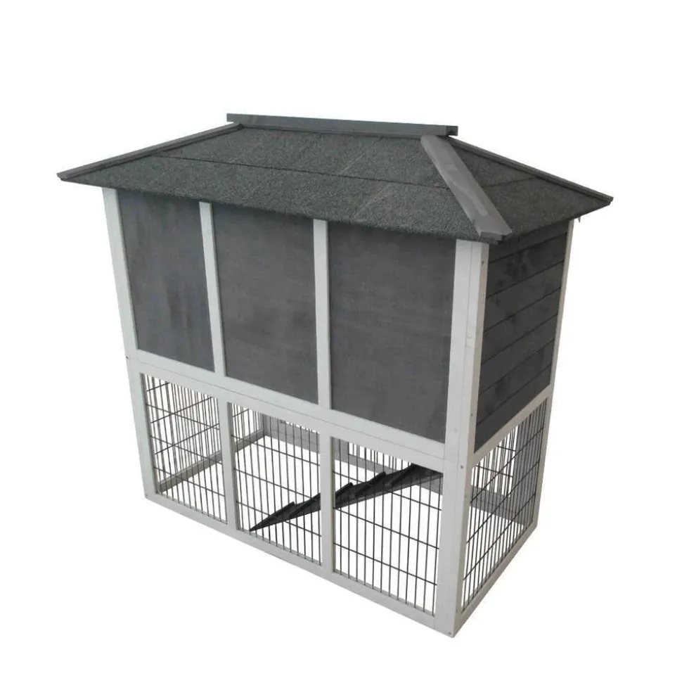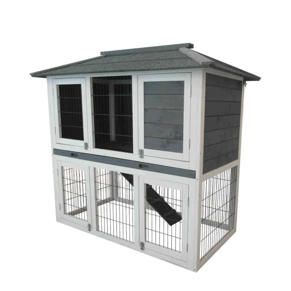 Accueillez confortablement vos lapins grâce au clapier ‘Rio’. Conçu en bois labellisé FSC, ce charmant clapier se dispose aussi bien à l’intérieur qu’à l’extérieur de votre maison. Il comprend un niveau inférieur et supérieur avec porte d’accès en façade ainsi que d’un tiroir de déjection en résine. Muni d’une trappe de fermeture entre les 2 niveaux, il est possible d’isoler votre animal au niveau inférieur ou supérieur afin de nettoyer ce clapier sans déranger votre lapin. Son design et ses belles couleurs blanches et grises, se marieront facilement à toute décoration et intérieur. De grande taille, il a été conçu pour accueillir plusieurs animaux. Dimensions : H.112,5 x L.124 x l.68 cm.