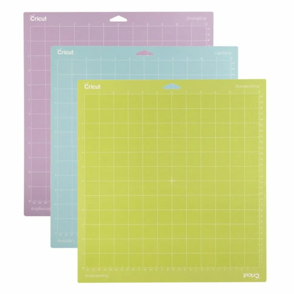 Grâce à ce lot de 3 tapis vous pourrez couvrir une large sélection de matériaux pour vos découpes. Que ce soit du papier fin, du vinyle, du thermocollant ou encore du carton. tout sera possible avec les différents tapis inclus. Ils permettront le maintien de vos matériaux tout au long du processus de découpe ! Vous y trouverez un tapis à adhérence faible, un tapis à adhérence standard et un tapis à forte adhérence. Ces tapis sont compatibles avec les machines de découpes Cricut Maker et Cricut Explore. Découvrez également le reste de notre gamme de tapis de découpe ! Dimensions : 30,5 x 30,5 cm. Référence Cricut : 2003546