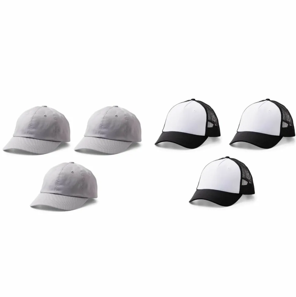 Créez des casquettes uniques avec les produits Cricut ! Grâce aux produits thermocollants ou Infusible Ink, customisez ces 6 casquettes avec vos propres designs : un dessin, le nom de votre équipe, un mot, un logo… Matière : 80 % polyester, 20 % coton pour une grande diversité de transferts. Taille unique, convient à la plupart des adultes. À utiliser avec la Cricut Hat Press et les matériaux Infusible Ink (vendus séparément). Contrairement au vinyle ou au flex thermocollant où le motif est fixé avec un adhésif, l’Infusible Ink fusionne totalement avec le textile et permet à l’encre de rester dans la fibre. Avec l’Infusibke Ink, vous aurez des résultats de transferts brillants, parfaitement lisses, qui ne se détachent pas, ne se décolorent pas et qui résistent au lavage. Entretien : lavage à la main et à l’eau froide. Ne pas javelliser. Repasser si nécessaire (chaleur élevée, pas de vapeur). Ne pas nettoyer à sec. Dimensions d’une casquette : 27 x 18 x 12 cm. Contenu : 3 casquettes noir/blanc + 3 casquettes grises.