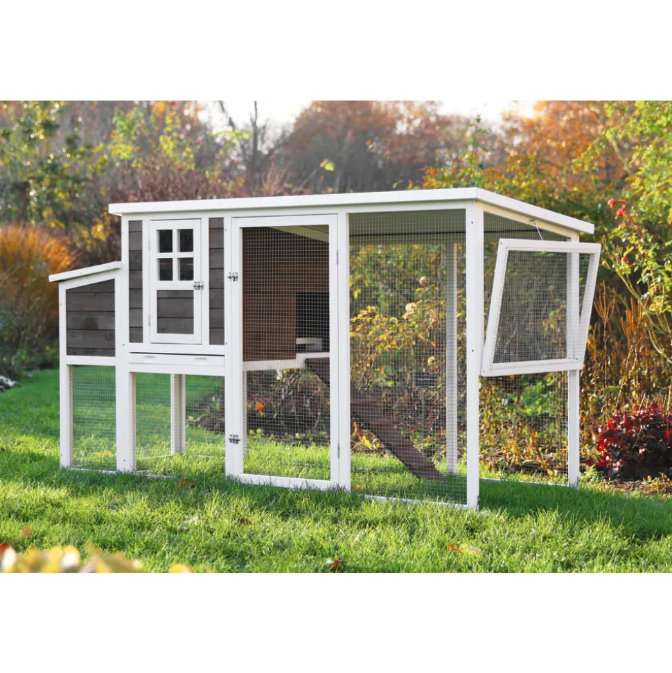DADU - Poulailler Aspen en bois noir et blanc avec pondoir - 198x76x104 cm