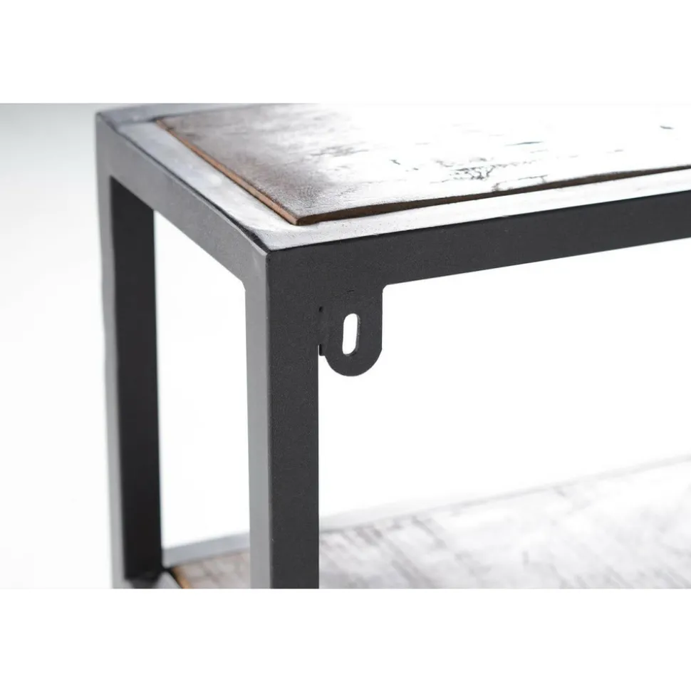 Étagère murale – métal et bois recyclé – noir – 80 x 80 x 18 cm