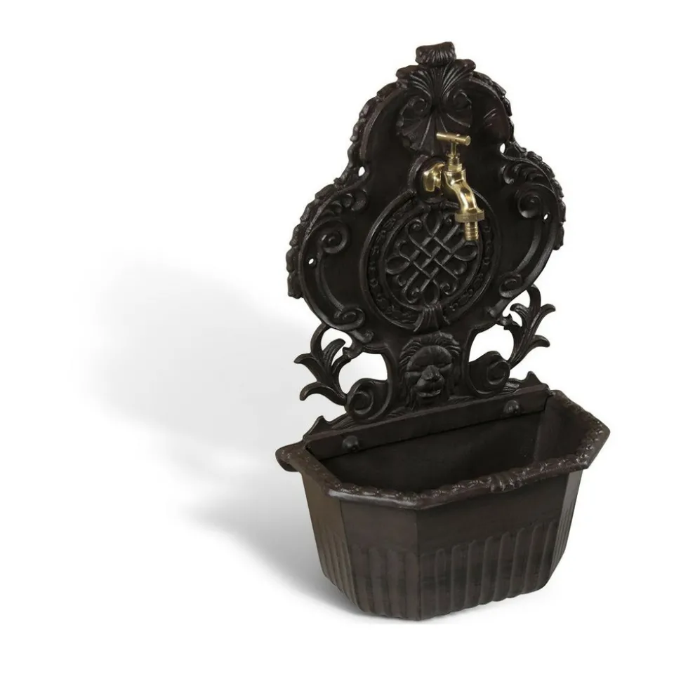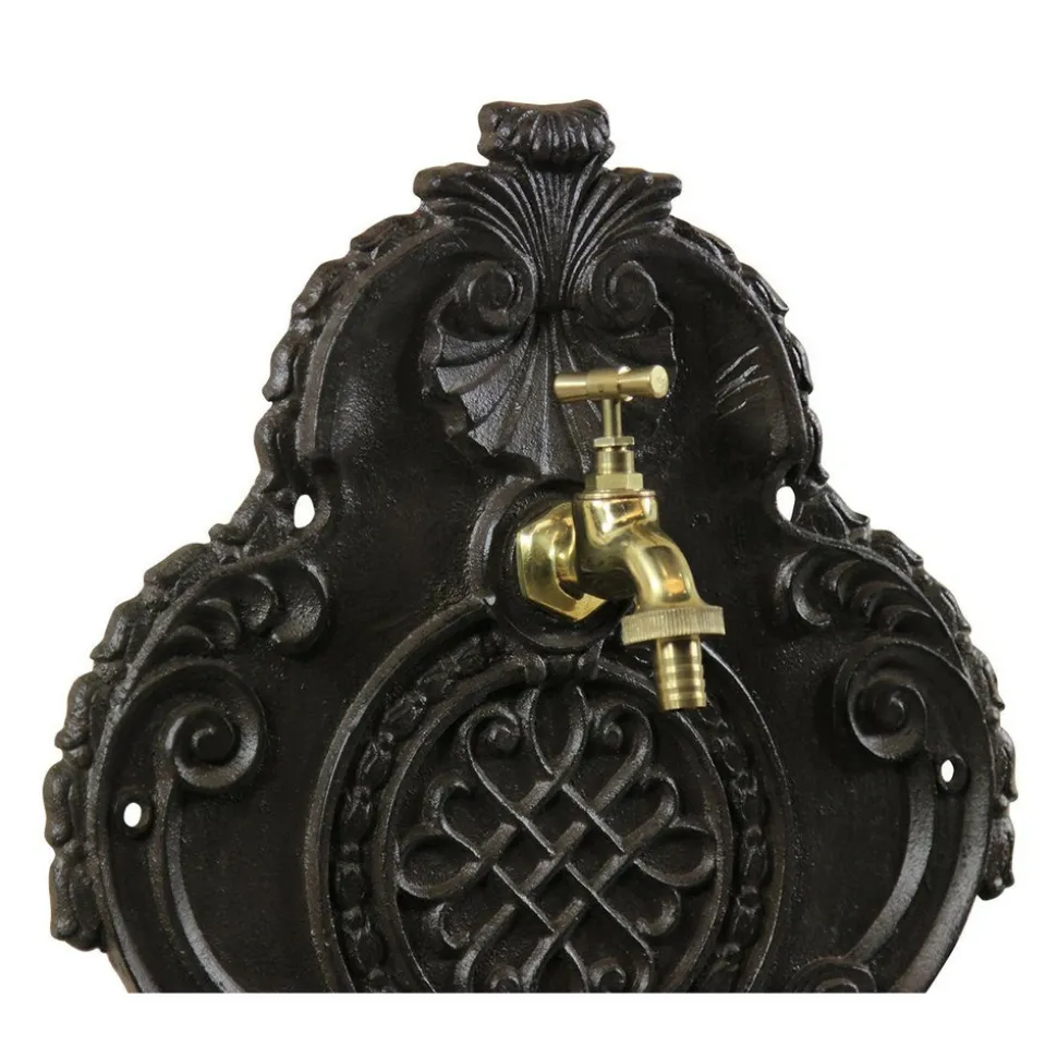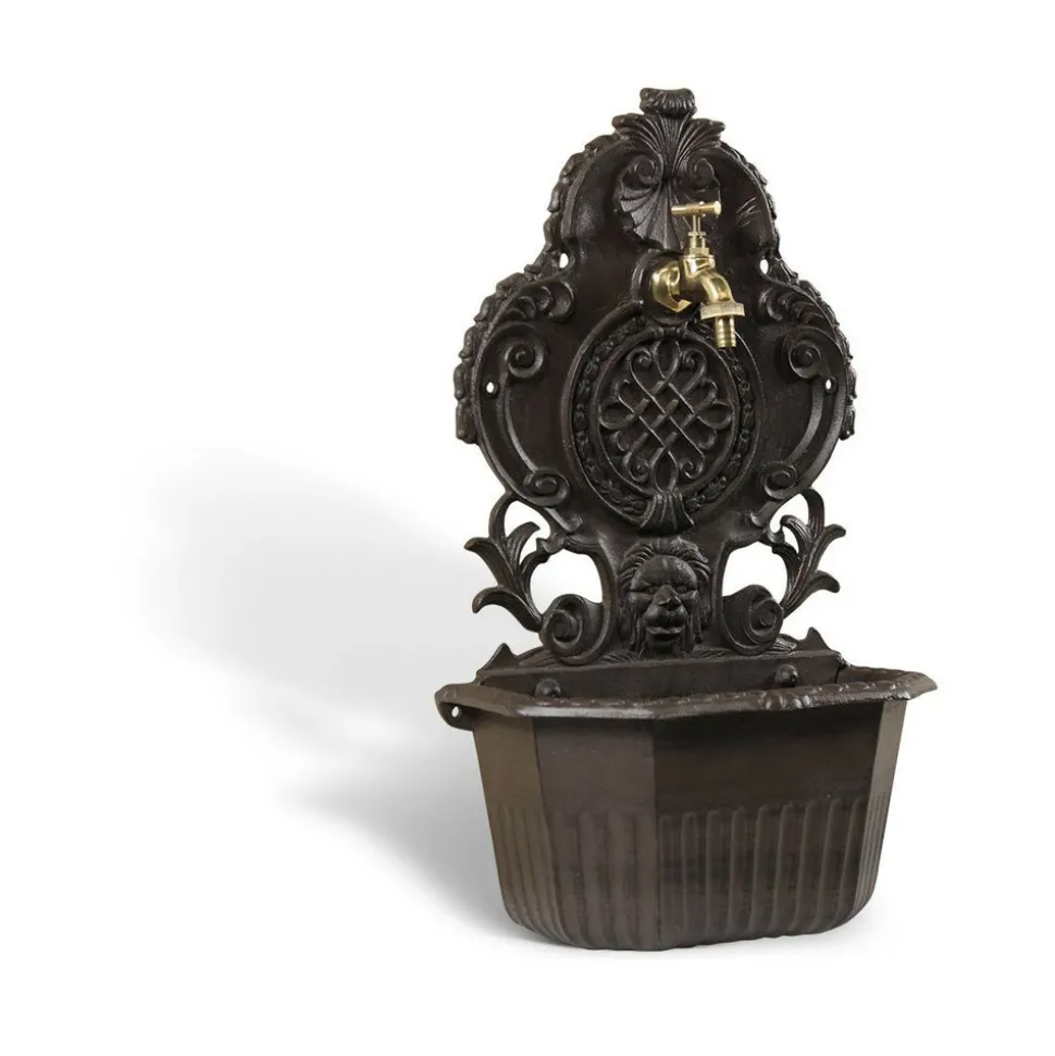 On tombe amoureux du contraste entre les motifs fluides de cette fontaine au style ancien et les lignes structurées de son évier !