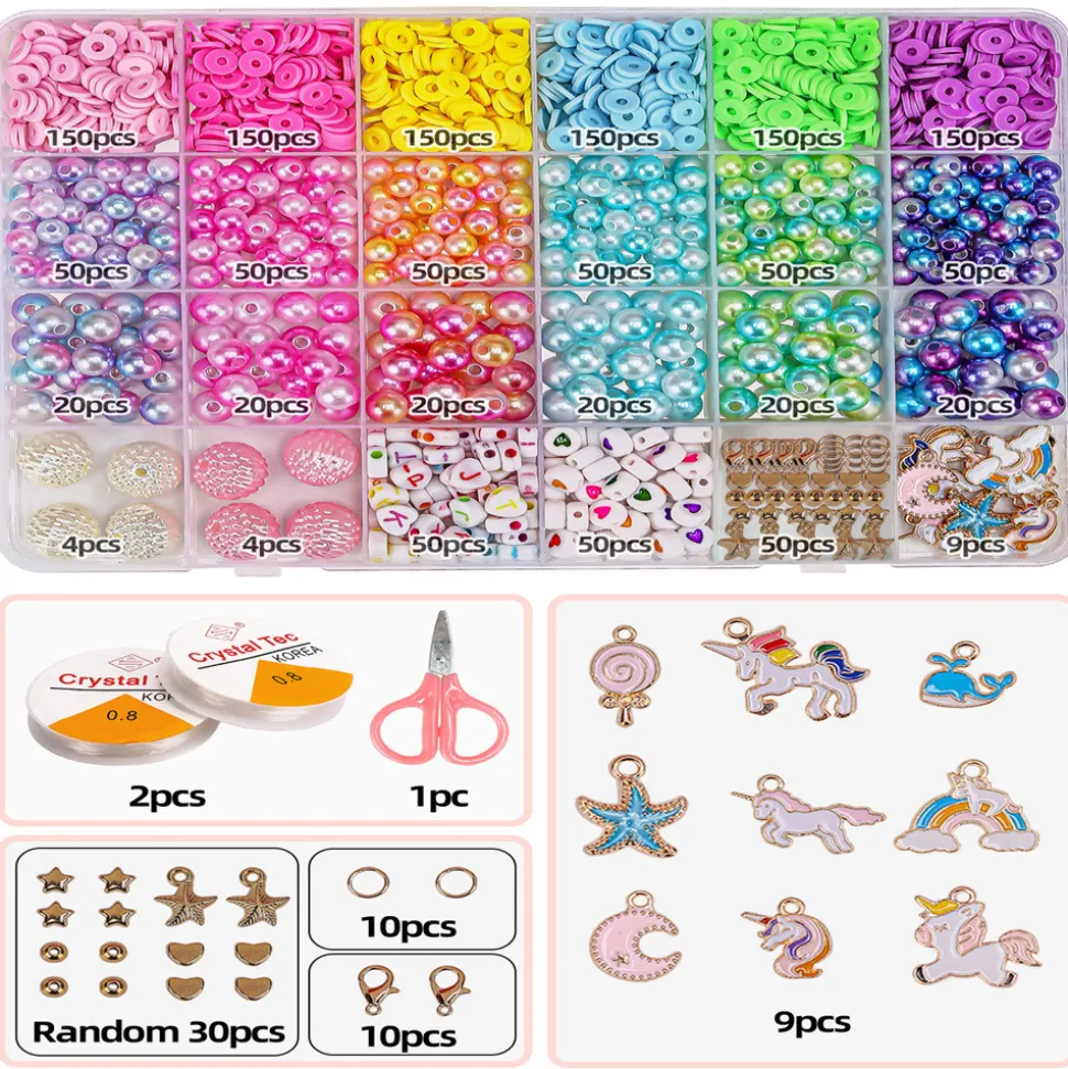 Cette boîte à perles de la collection Licorne vous emmène dans un monde de magie et de créativité. Cette boîte est parfaite pour les amateurs de bijoux faits main et regorge de créativité. Chacun des 24 compartiments contient une perle de couleur différente, offrant une variété de nuances pour vos projets. Avec 1487 perles au total, vous aurez tout le matériel nécessaire pour concevoir des bijoux uniques et extraordinaires.# Principaux atouts1. **Couleurs variées** : 24 compartiments contiennent des perles de différentes couleurs, vous permettant de créer des combinaisons infinies et de réaliser des designs originaux.2. **Accessoires inclus** : Ce kit comprend 2 bobines élastiques, 1 paire de ciseaux et des breloques licorne, vous offrant tout ce dont vous avez besoin pour commencer à fabriquer des bijoux immédiatement.3. **Quantité abondante** : Avec 1487 perles, vous aurez suffisamment de matériaux pour réaliser plusieurs projets de bijoux, qu’il s’agisse de colliers, de bracelets ou de boucles d’oreilles.# Paramètres du produit**Nombre de compartiments** : 24- **Nombre total de perles** : 1487- **Accessoires inclus** : 2 rouleaux de cordon élastique, 1 paire de ciseaux- **Thème** : Licorne- **Couleur** : Chaque compartiment contient des perles d’une couleur différente