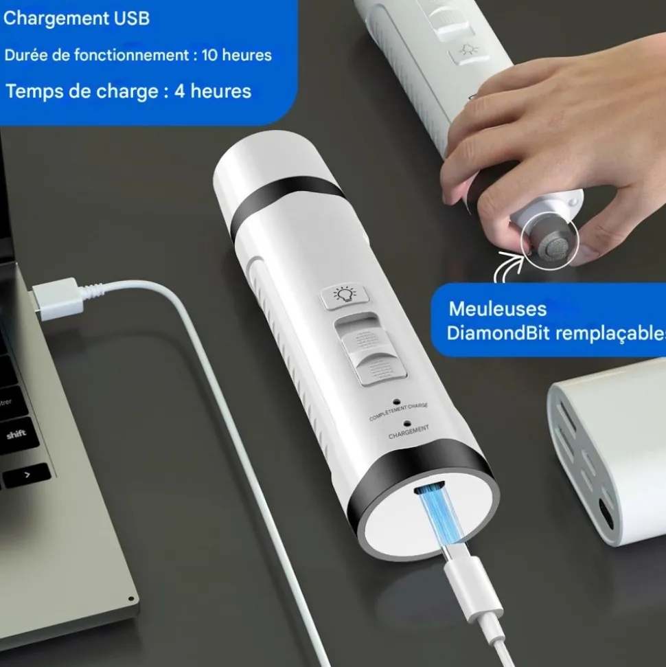 - Flexibilité : Deux vitesses réglables et trois ports de broyage conviennent aux ongles de toutes tailles et dureté.