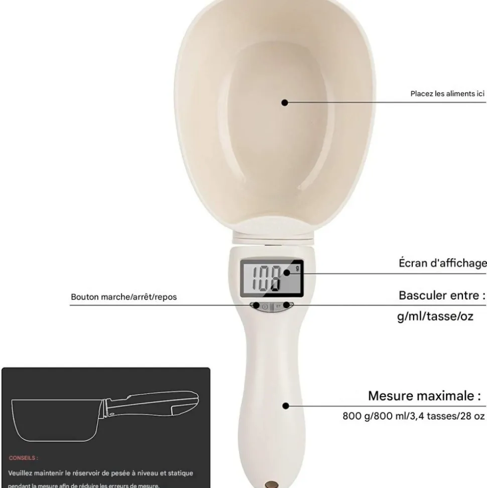- Cuillère détachable : Tasse amovible en PP de haute qualité, facile à installer, enlever et nettoyer.