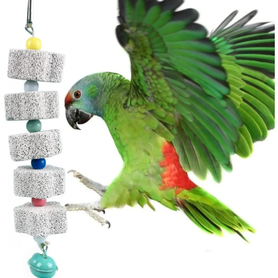 - Design attrayant : Avec des crochets, perles colorées et cloches, ils décorent la cage et attirent les perroquets.