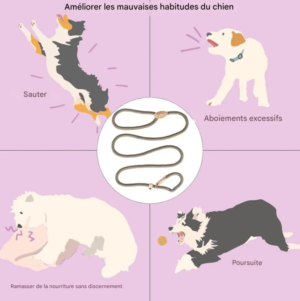 - Applications variées : Améliore les mauvaises habitudes du chien lors de diverses activités.