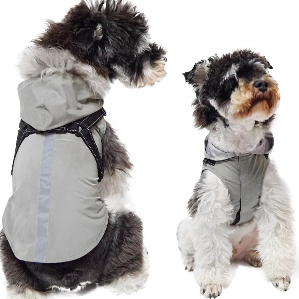 DOWNYPAWS – Manteau pour chiens-avec harnais-réfléchissant imperméable-gris taille 2xl