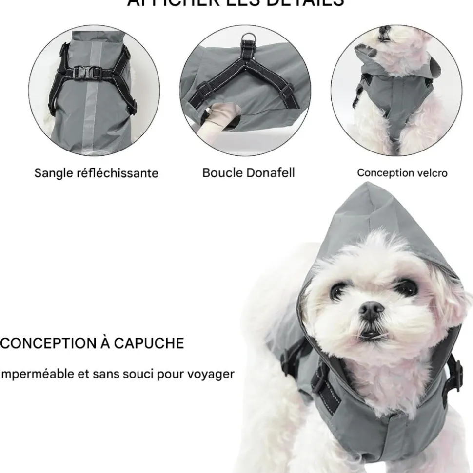 DOWNYPAWS - Manteau pour chiens-avec harnais-réfléchissant imperméable-gris taille 2xl