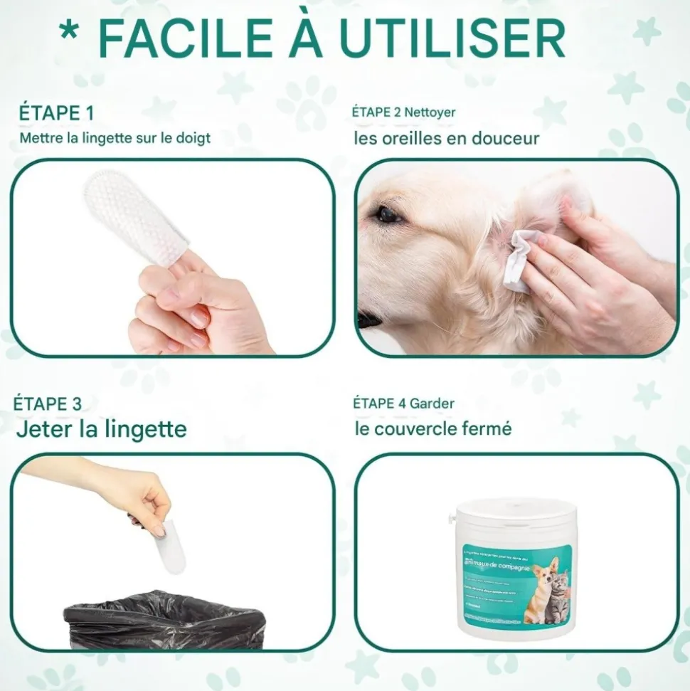 - Qualité Premium : Conçues en Europe, ces lingettes sont douces, hypoallergéniques, sans parfum ni colle, idéales pour soigner les oreilles de votre chien.