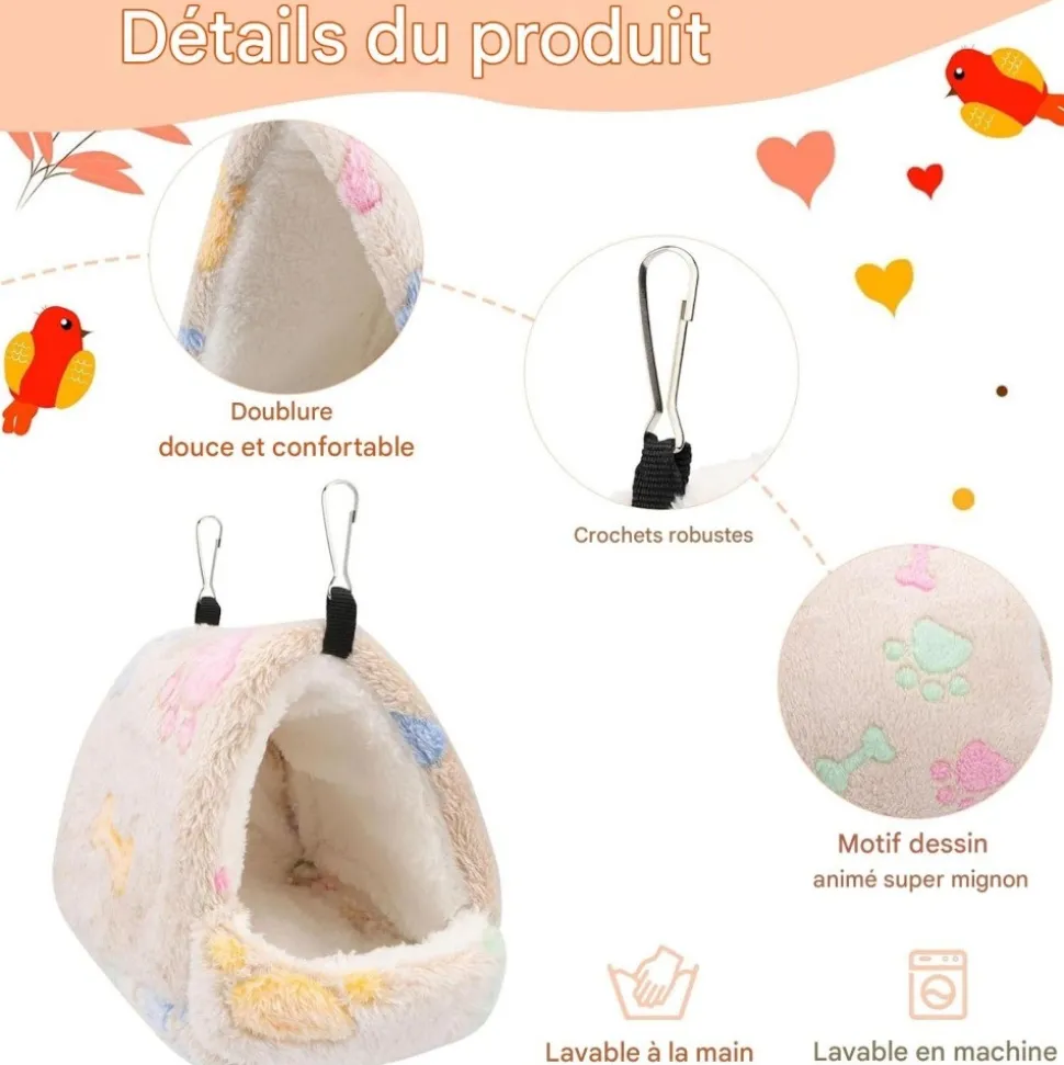 Facile à nettoyer : Notre nid en peluche douce est facile à laver à la main ou au lave – linge pour garder la cage propre.
