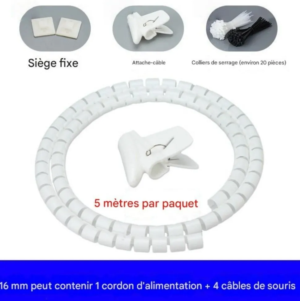 - Tuyau en spirale pratique : Regroupe les câbles pour un meilleur rangement à la maison et au bureau, évitant le désordre.