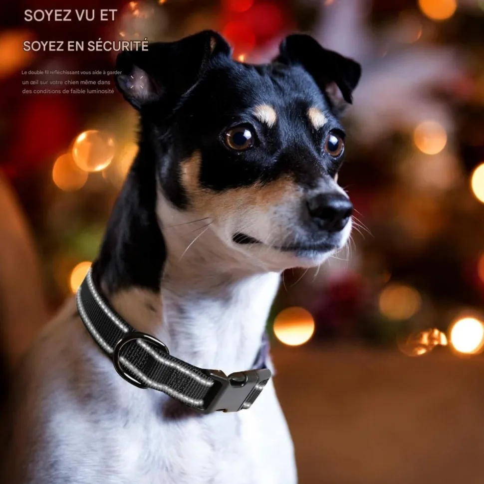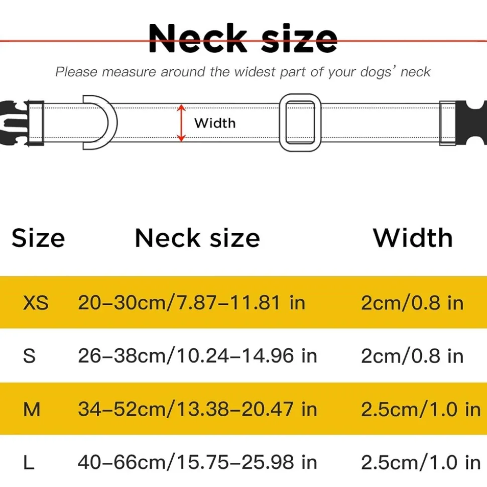 Matériaux de qualité : Le collier est en nylon durable et néoprène rembourré, doux et amical pour la peau du chien.Boucle de sécurité : Boucle ABS de haute qualité avec dégagement rapide et anneau en D robuste, facile à ajuster.Sécurité nocturne : Les sangles réfléchissantes améliorent la visibilité la nuit, protégeant le chien des dangers potentiels.Utilisation variée : Idéal pour l’usage quotidien et d’autres activités, donnant au chien un look mignon et élégant.