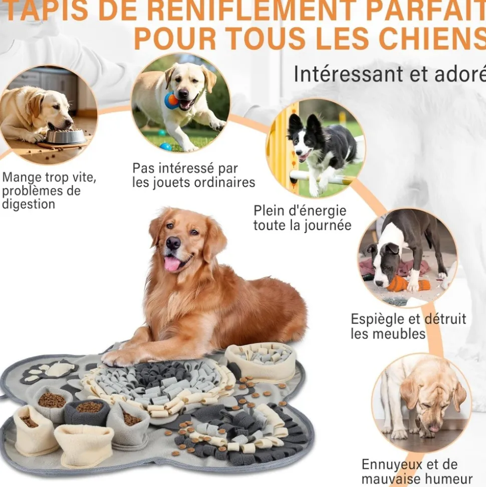 - Variété d’éléments : Offre une variété d’éléments de recherche, stimulant le chien mentalement et physiquement. Idéal comme tapis de nourriture.