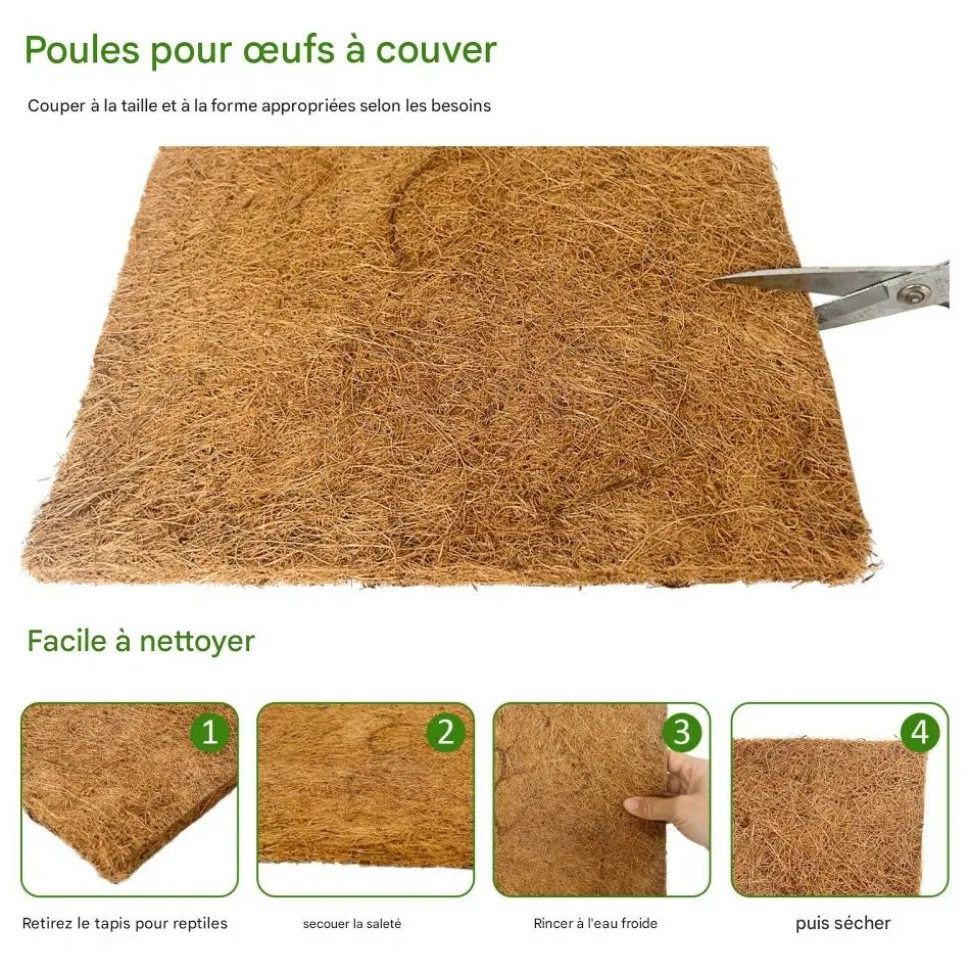 - Découvrez le tapis Downypaws pour nid d’oiseau et animal de compagnie! Conçu en fibre végétale de noix de coco, il est carré de 25*25cm avec une épaisseur de 0,6cm. Il offre une excellente protection contre l’eau, les herbes et le gel. Parfait pour les poules, les pigeons voyageurs et d’autres animaux de compagnie, il assure un environnement propre et sécurisé. Son matériau naturel est non – toxique et doux pour les animaux, leur donnant un endroit confortable pour se reposer et pondre. ????????️