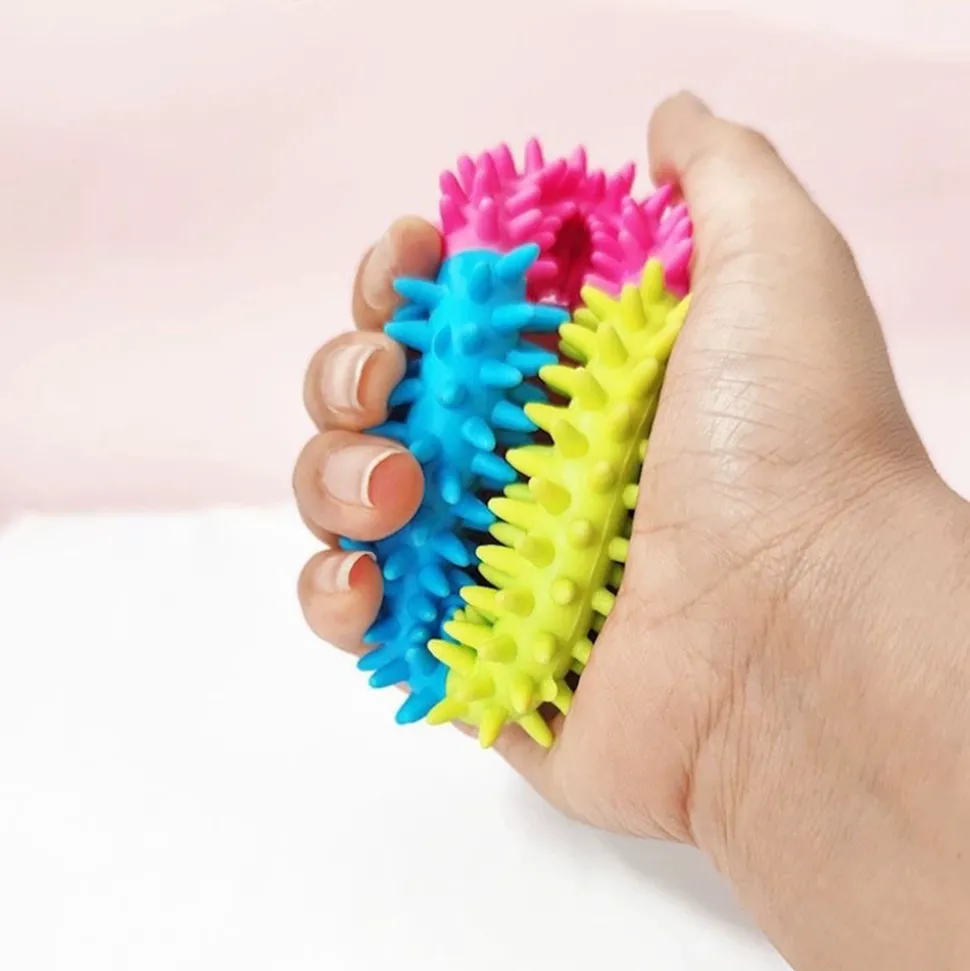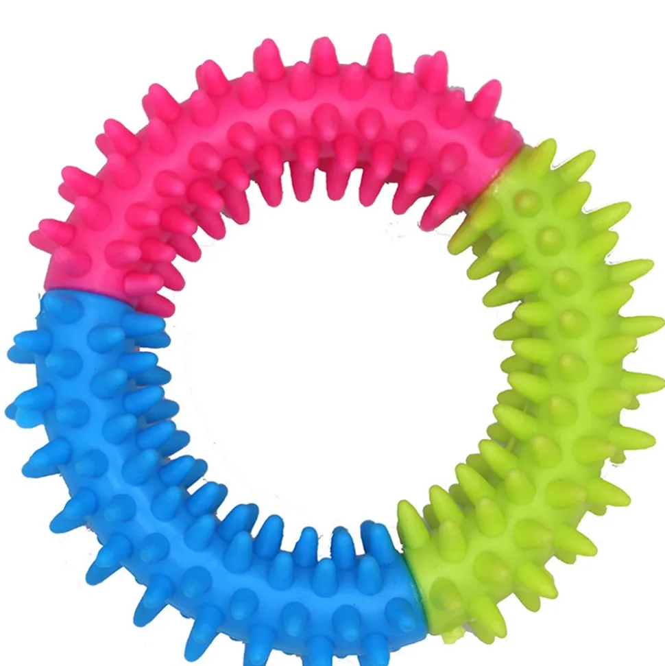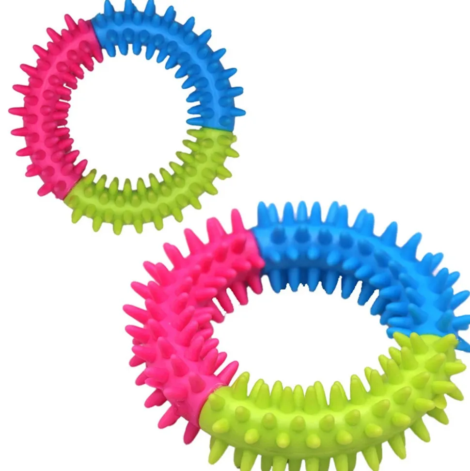 Découvrez le Jouet à Mâcher Coloré de DtopbuyAge pour votre chéri chien.**Matériau durable** : Ce jouet est fabriqué en caoutchouc TPR, un matériau extrêmement résistant. Il résistera aux morsures les plus agressives de votre chien, même si celui – ci est un mangeur particulièrement vorace. Cela signifie que vous n’aurez pas à vous inquiéter de devoir le remplacer fréquemment.**Santé dentaire** : Le fait de mâcher ce jouet peut aider à nettoyer les dents de votre chien. En éliminant les tartres et les bactéries, il contribue à maintenir une bonne santé bucco – dentaire pour votre animal de compagnie.**Multicolore et attrayant** : Le pack multicolore (bleu, vert, rose) est particulièrement attirant pour les chiens. Les couleurs vives stimulent leur intérêt et leur envie de jouer.**Jeu interactif et entraînement** : Ce jouet peut également être utilisé pour des jeux interactifs avec votre chien, comme le lancer et le ramasser. Il peut également être utilisé dans le cadre de sessions d’entraînement, renforçant le lien entre vous et votre chien. Il est donc parfait pour les chiens mangeurs agressifs, en leur donnant un moyen positif de canaliser leur énergie.