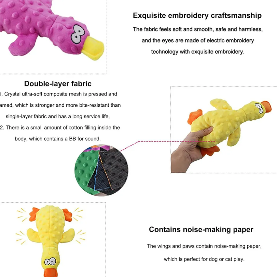 ???? JOUETS POUR CHIEN ????Le jouet couineur pour chien en forme de canard est équipé d’un couinement intégré. En pinçant la tête du jouet, vous pouvez permettre à votre chien de jouer sans fin. ????⚡️ NETTOYAGE DES DENTS ⚡️Ce jouet pour chien a également une fonction de nettoyage des dents. Il permet de maintenir la bouche de votre chien propre tout en nettoyant ses dents. De plus, il peut apaiser son humeur et le rendre moins nerveux. ???????? MATÉRIAU EN PELUCHE ????Fabriqué en peluche, ce jouet est doux et résistant. Ses couleurs mignonnes et vives aident les animaux de compagnie à se détendre. ???????? SIMPLE À NETTOYER ????Le jouet en forme de canard est très facile à nettoyer. Il peut être lavé à l’eau ou à la main en machine, facilitant l’enlèvement des taches. ???????? LARGE GAMME D’UTILISATIONS ????Ces jouets en peluche sont largement utilisés et sont adaptés à 80% des chiens, qu’ils soient de petite, moyenne ou grande taille. ????
