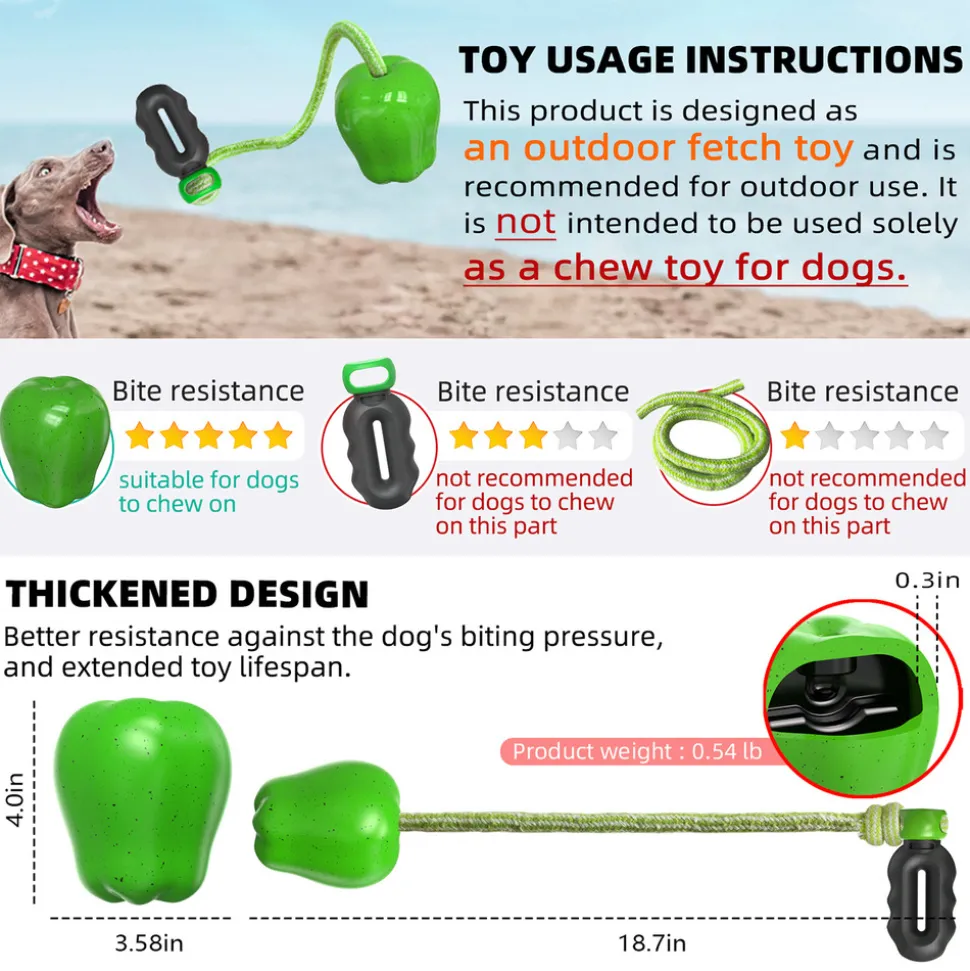 ???? JOUET MULTIFONCTION POUR CHIEN ????Ce jouet pour chien est équipé d’un accessoire de lancement. Il combine les fonctions de jeu de récupération de plein air, d’entraînement, de jeu d’arrache – coeur interactif, de grincement et de nettoyage des dents et de son couineur. Le jouet est relié à l’accessoire de lancement par une corde de coton. Grâce à ce design innovant, il peut être lancé à une plus grande distance, augmentant la distance de récupération, aidant à consommer l’énergie abondante de votre chien et le maintenant en bonne santé. ????⚡️ ACCESSOIRE DE LANCEMENT INNOVANT ⚡️L’accessoire de lancement est conçu pour propulser le jouet à longue distance. Pour l’utiliser, il suffit de le tenir dans la main, de faire tourner le jouet pour créer une force centrifuge puissante. Après relâchement, le jouet s’envole et utilise le moment angulaire pour réaliser un lancer plus long. Il peut être utilisé dans des espaces extérieurs ouverts tels que des champs d’herbe, des plages, etc. ????️???? CONSTRUCTION ÉPAISSE ????Le jouet a une épaisseur de paroi améliorée, avec une épaisseur de paroi intérieure de 1 cm. Cela lui confère une excellente résistance aux morsures et une durée de vie plus longue. Les animaux de compagnie peuvent profiter de moments de plaisir plus longs, tout en permettant aux propriétaires d’économiser sur les dépenses quotidiennes. ???????? FONCTION DE GRINCEMENT ET DE NETTOYAGE DES DENTS ????La partie principale de ce jouet est fabriquée en matériau alimentaire de haute élasticité et de grande résistance, garantissant sa sécurité et sa durabilité. La forme de citrouille permet de nettoyer efficacement les débris alimentaires, la saleté et le tartre de la cavité buccale du chien lorsqu’il le mâche. Elle assure un nettoyage complet des incisives, canines et molaires du chien, favorisant la santé orale. De plus, son design arrondi garantit qu’il ne nuit pas aux gencives du chien. ???????? MATÉRIAUX SÉCURIS ????Ce jouet est fabriqué en TPR d’alimentaire de haute élasticité et de grande résistance. Les matières premières ne contiennent pas de bisphénol A, de PVC ou de phthalates, garantissant la protection totale de la santé du chien. Les matières premières et le produit fini sont totalement sûrs, vous pouvez l’utiliser pour votre chien sans aucun souci.