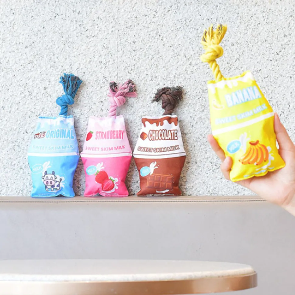 ???? Voici des jouets fantastiques pour vos chiens : les produits DtopbuyAge !???? **Caractéristiques attrayantes**- **Formes variées** ???????????? Ce sont des jouets en forme de carton de lait, de banane, de fraise et de chocolat. Ces formes familières et colorées attirent immédiatement l’attention de votre chien.- **Sonore et pour le mordillage** ???? Les jouets sont dotés de cordes nouées qui émettent un son lorsqu’ils sont mordus. Cela non seulement amuse votre chien mais également stimule son instinct de mordillage, ce qui est bénéfique pour ses dents et sa santé orale.???? **Matériaux sûrs**- **Sécurité garantie** ???? Bien que ressemblant à des aliments, ces jouets sont conçus pour être sûrs pour votre chien. Ils sont fabriqués avec des matériaux de qualité, permettant à votre chien de jouer et de mordre avec plaisir sans risque.- **Amusement et santé** ???? En jouant avec ces jouets, votre chien peut s’amuser, réduire le stress et maintenir une bonne santé mentale et physique.Donnez à votre chien une expérience de jeu pleine de plaisir avec ces jouets DtopbuyAge ! ????