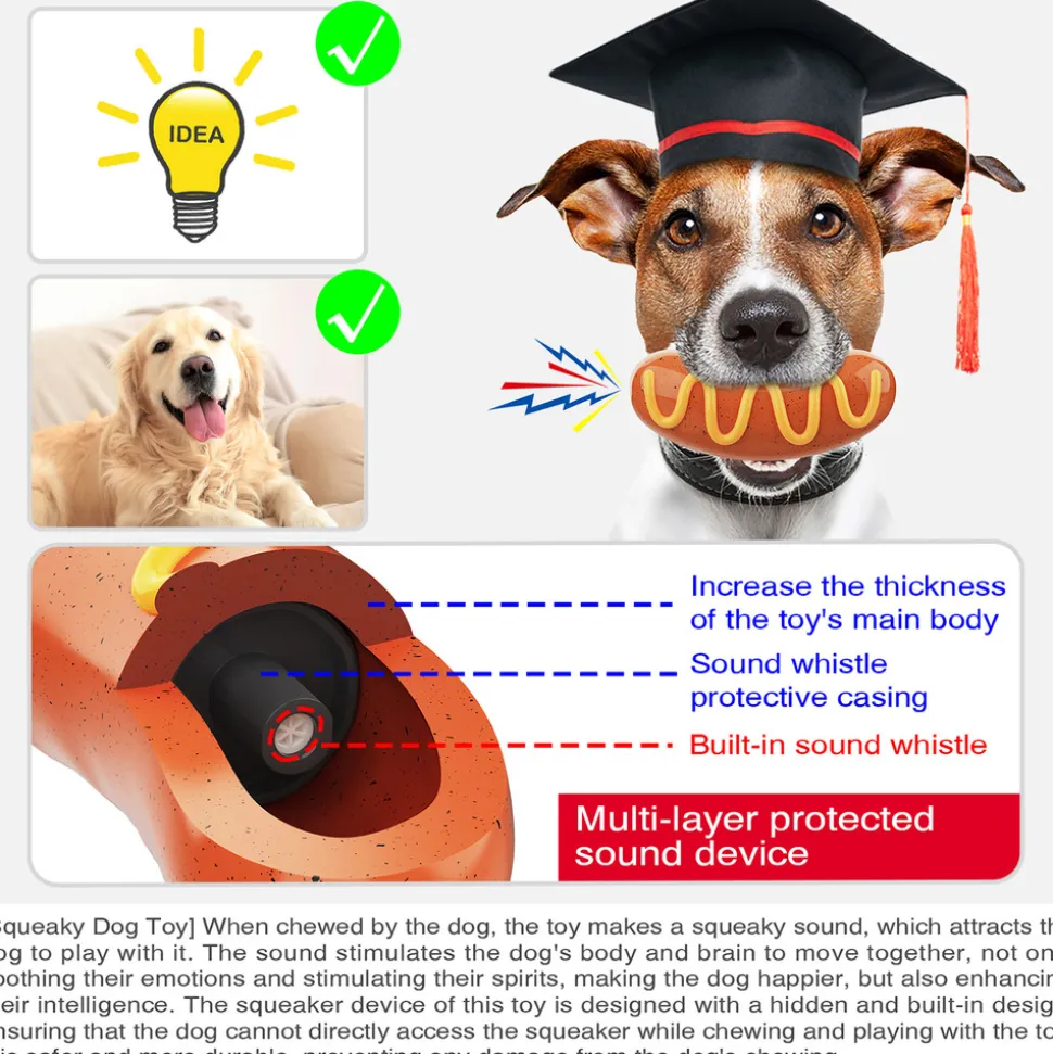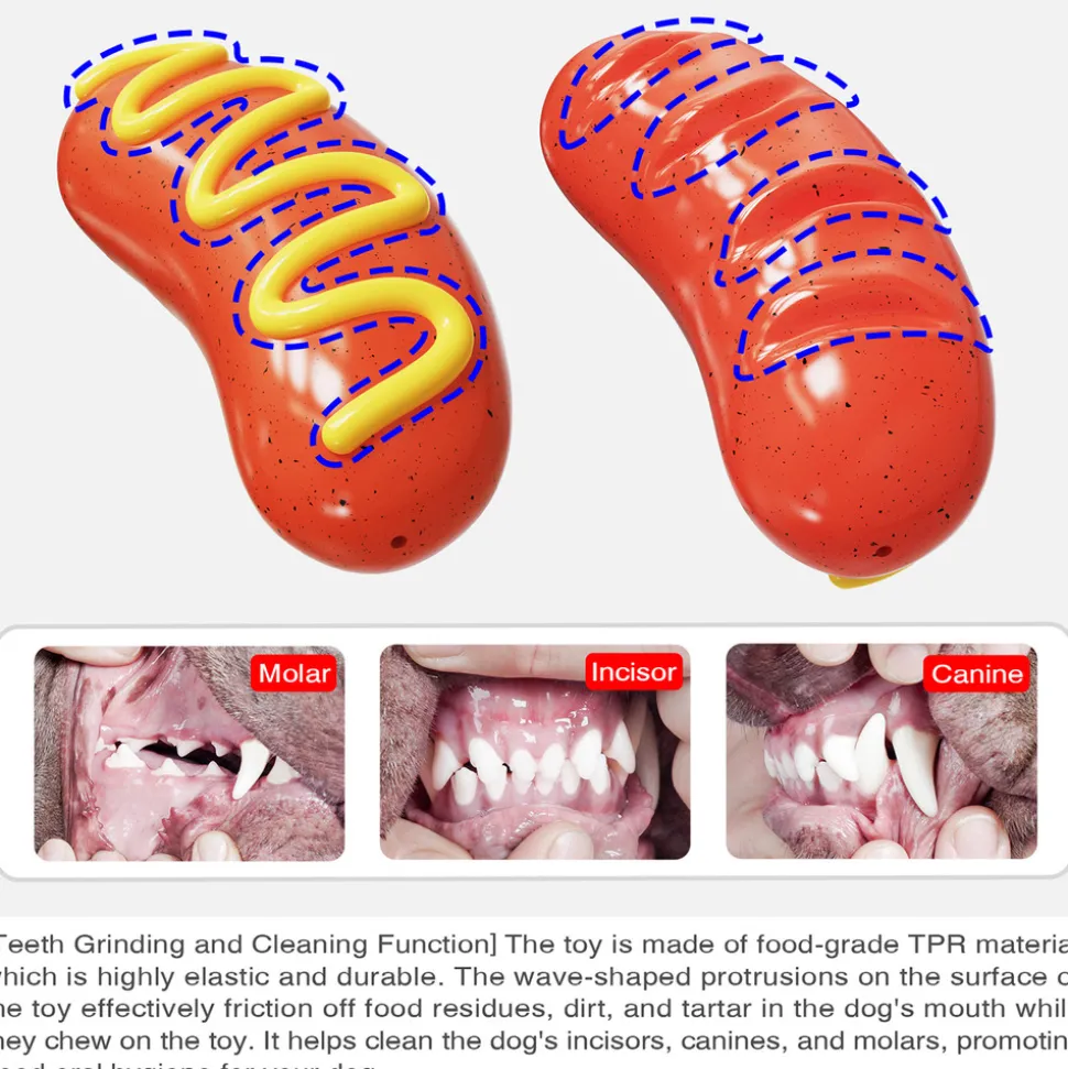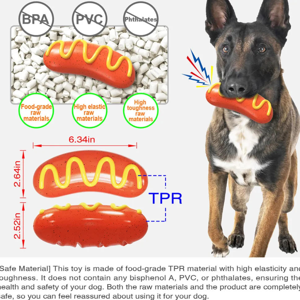 ???? JOUETS À MÂCHER POUR CHIENS EN MATÉRIEL DE HAUTE QUALITÉ ????Ces jouets à mâcher pour chiens sont fabriqués en caoutchouc de qualité supérieure. Ils résistent aux morsures des chiens à long terme et conviennent à tous les tailles de chiens, grands, moyens et petits. ????⚡️ CONTENU DU PAQUET ⚡️Vous recevrez un jouet à mâcher en forme de saucisse Hot Dog. Les couleurs vives de cette saucisse attirent l’attention de votre chien. Parfait pour les jeux de lancer et récupération. ???????? JOUET GRINCEUR POUR CHIEN ????Ce jouet à mâcher grinceur peut produire un son pour attirer votre chot, satisfaire son instinct de chasse et son besoin de mâcher, le tenant intéressé tout au long du jeu. ???????? NETTOYAGE DES DENTS ????La mastication est un moyen naturel pour les chiens de nettoyer leurs dents. Le matériau doux de ce jouet aide à enlever la plaque dentaire et à masser les gencives sans les blesser. ???????? CADEAU PARFAIT ????Ces jouets indestructibles sont des cadeaux idéaux pour les chiens. Ils aident non seulement à former votre chien à ne pas mordre les objets indésirables, mais aussi à renforcer le lien avec vous. ????