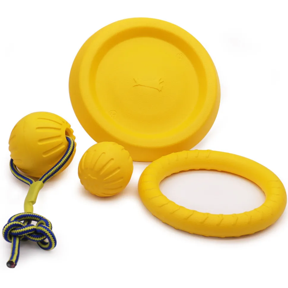 Découvrez les incroyables jouets pour chiens DtopbuyAge ! Ces jouets EVA sont l’allié parfait pour votre chien, qu’il s’agisse d’une grande race comme un Golden Retriever ou un Border Collie.Le matériau EVA utilisé est extrêmement durable et pratiquement indestructible, offrant un excellent soutien aux chiens ayant une forte envie de mordre. Qu’il s’agisse du célèbre frisbee, de la balle interactive ou de l’anneau à tirer, chaque jouet est conçu pour distraire votre chien.Les frisbees sont idéaux pour l’entraînement et le jeu interactif, stimulant l’instinct de chasse et d’exercice de votre chien. La balle peut être utilisée pour courir et rapporter, tandis que l’anneau de traction capte l’attention de votre chien et encourage le jeu.De plus, ces jouets constituent des outils de repentir dentaire parfaits. En mâchant et en manipulant ces jouets, les dents de votre chien seront nettoyées et resteront saines. Ils constituent la solution idéale pour éviter que votre chien ne s’ennuie et le maintenir en bonne santé physique et mentale.