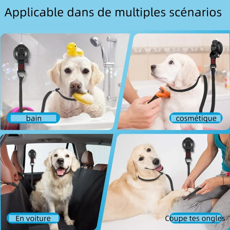 Le DtopbuyAge présente une corde de traction innovante, idéale pour les moments de bain, de trajet en voiture et de soins de beauté de votre animal de compagnie. Elle est dotée d’un système d’attache par ventouse pour éviter que votre chéri ne bouge inutilement.Lorsque vous battez votre animal, le système de fixation par ventouse maintient votre chien ou chat en place, facilitant considérablement la tâche. En voiture, il offre une sécurité supplémentaire en empêchant votre animal de se déplacer dans le véhicule. Durant les séances de beauté, il permet également de maintenir votre animal calme et immobile.Contrairement aux cordes de traction traditionnelles, celle-ci offre une solution pratique et efficace pour gérer le mouvement de votre animal dans divers contextes. Sa fixation par ventouse est simple à installer et à utiliser, tout en étant assez solide pour maintenir votre animal en place.