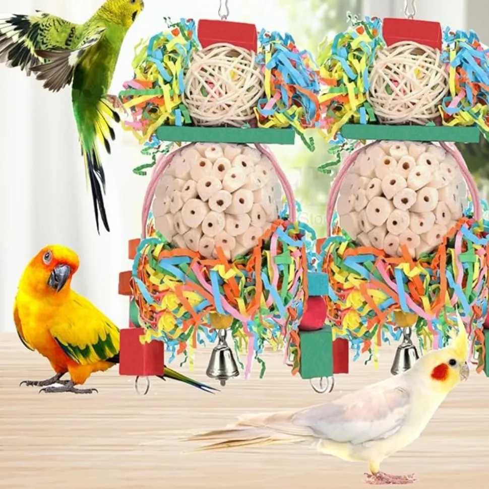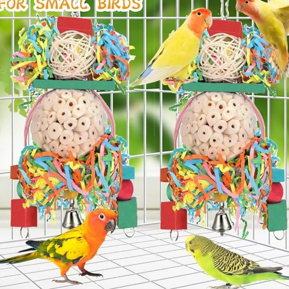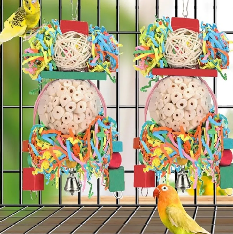 ????【Meilleur cadeau】 ????: Ces collections amusantes divertissent les oiseaux. Ils sont parfaits pour les oiseaux à saisir, mâcher, fourrer, ramasser et jouer avec. Fournis avec des crochets pratiques pour la cage, ce sont des cadeaux idéaux pour calopsittes, inséparables, conures, perruches, perroquets et autres oiseaux de petite et moyenne taille.