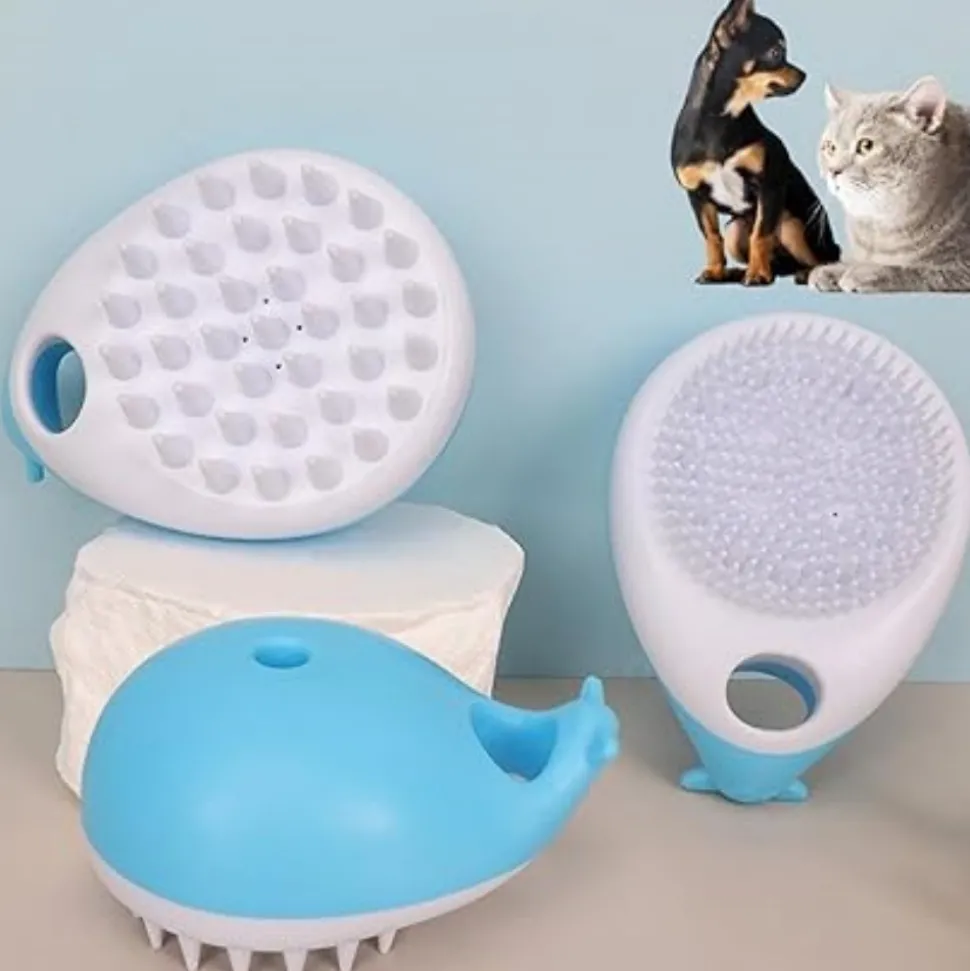????【Forme unique】 : Avec son design en forme de baleine mignonne, cette brosse attire immédiatement l’attention de vos animaux de compagnie. Elle est ergonomique, se tient parfaitement dans la paume de la main, rendant le bain d’un animal amusant et agréable. ????