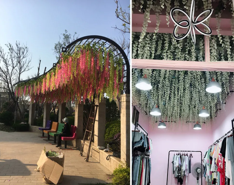 - Pour les mariages, il est important de créer un environnement enchanteur. Ces rotins de fleurs artificielles sont la solution parfaite. Ils peuvent être facilement accrochés au plafond, transformant l’espace en un lieu de rêve. Que vous ayez un mariage intime ou un grand événement, ces fleurs ajouteront une touche de grâce et de sophistication.