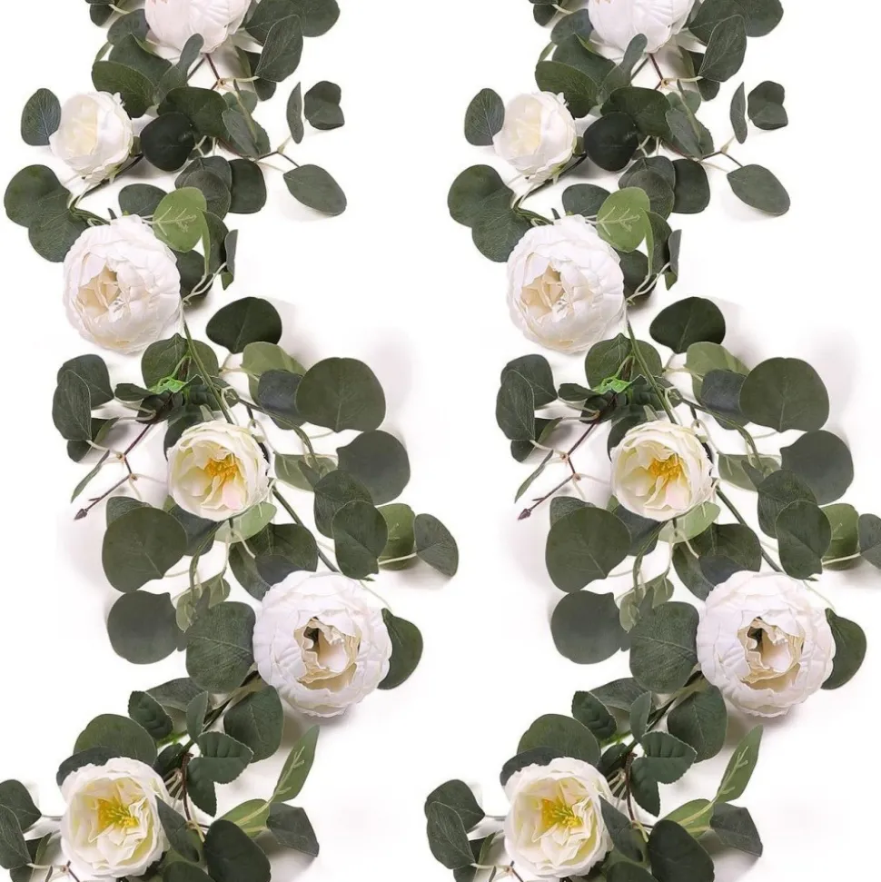 - Nos vines de fleurs artificielles de pivoine et de feuilles d’eucalyptus sont conçues pour transformer vos fêtes de mariage en un spectacle magnifique. Les fleurs de pivoine sont délicatement réalisées, avec des couleurs vives et des pétales bien définis qui imitent parfaitement les fleurs vraies. Les feuilles d’eucalyptus ajoutent une touche de fraîcheur et de naturel, créant une ambiance enchanteuse.