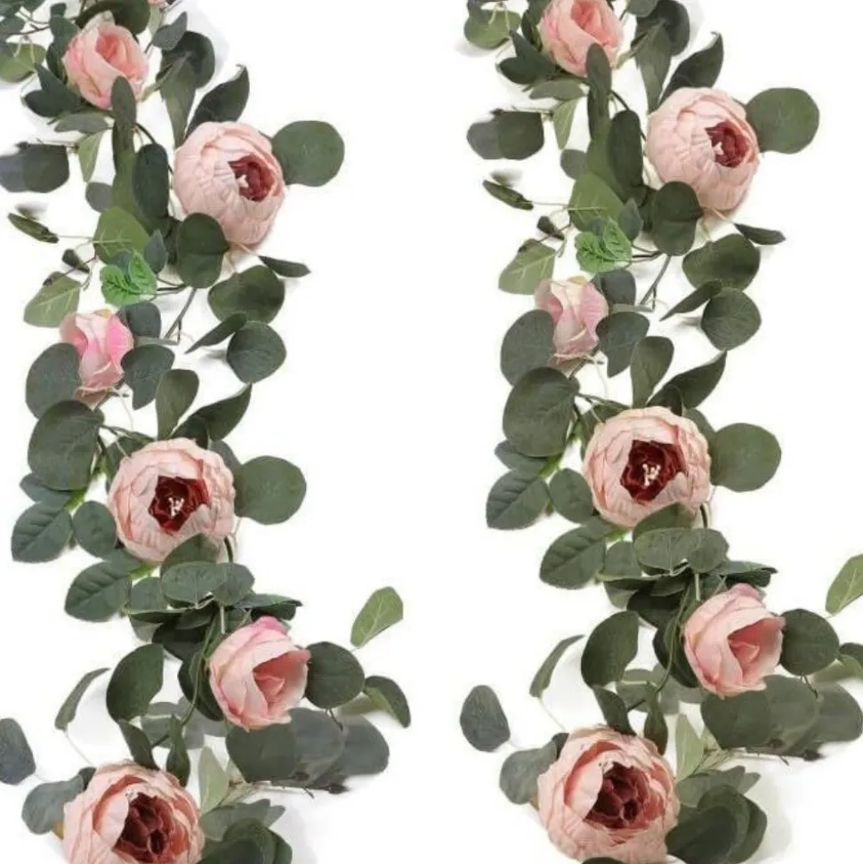 - Nos vines de fleurs artificielles de pivoine et de feuilles d’eucalyptus sont conçues pour transformer vos fêtes de mariage en un spectacle magnifique. Les fleurs de pivoine sont délicatement réalisées, avec des couleurs vives et des pétales bien définis qui imitent parfaitement les fleurs vraies. Les feuilles d’eucalyptus ajoutent une touche de fraîcheur et de naturel, créant une ambiance enchanteuse.