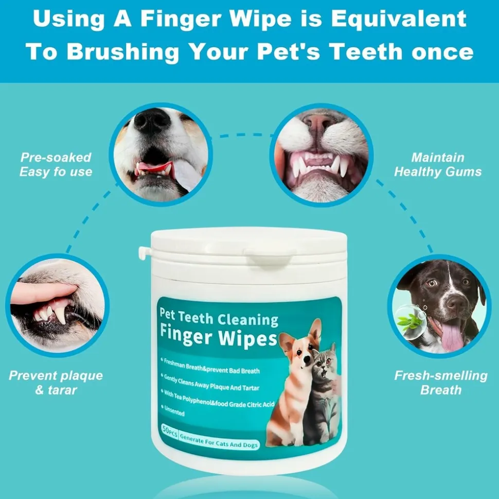 ???? LINGETTES POUR NETTOYER LES DENTS DES ANIMAUX DE COMPAGNIE ????【 Ingrédients naturels 】Ces lingettes pour nettoyer les dents des animaux de compagnie sont formulées avec une formule douce et efficace, conçue spécifiquement pour le nettoyage des dents des animaux. Sans alcool, parabènes et parfums, elles sont sûres même si les animaux les léchent ou les ingèrent. ????⚡️ 【 Recommandé par les vétérinaires 】Les vétérinaires recommandent un soin dental régulier. Ces lingettes éliminent sûrement les débris et les résidus alimentaires, préviennent l’accumulation de tartre et de plaque, ainsi que les problèmes oraux tels que les maladies gengivales et les caries. Utilisez – les pour maintenir la santé globale de votre animal de compagnie. ???????? 【 Soutien à la santé orale des animaux 】Nettoyez facilement et rapidement les dents et les gencives de votre animal après les repas ou lors des voyages. En utilisant quotidiennement les lingettes pour les chats et les chiens, vous pouvez établir une routine de soin dental parfaite, garder les dents propres et la respiration fraîche de votre chouchou. ???????? 【 Application facile 】Retirez les lingettes, mettez – les sur vos doigts et effacez doucement les dents et les gencives de votre animal en faisant des mouvements circulaires. Vous pouvez ainsi atteindre les zones difficiles d’accès dans la bouche de votre animal pour un nettoyage plus efficace du tartre. Pas besoin d’eau ni de rinçage. Elles conviennent à la plupart des doigts d’adultes. ???????? 【 Fidèle à la confiance 】Ces lingettes sont adaptées à tous les animaux de compagnie. Si vous n’êtes pas satisfait de votre expérience d’achat, contactez – nous et nous vous offrirons la meilleure solution. Gardez les dents et les gencives de votre animal en bonne santé sans stress. ????