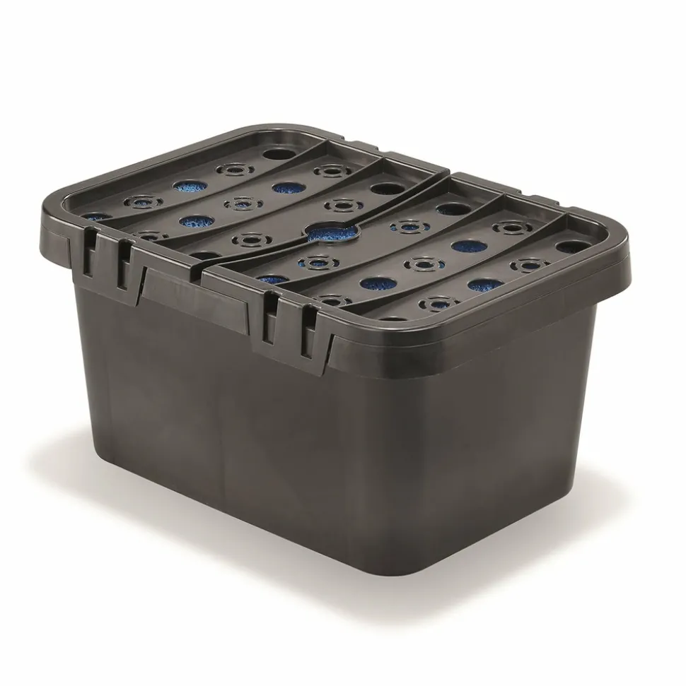 Grâce à sa forme compacte et plate, le boîtier filtre de bassin est parfaitement adapté aux pompes de bassin esotec de petite taille.