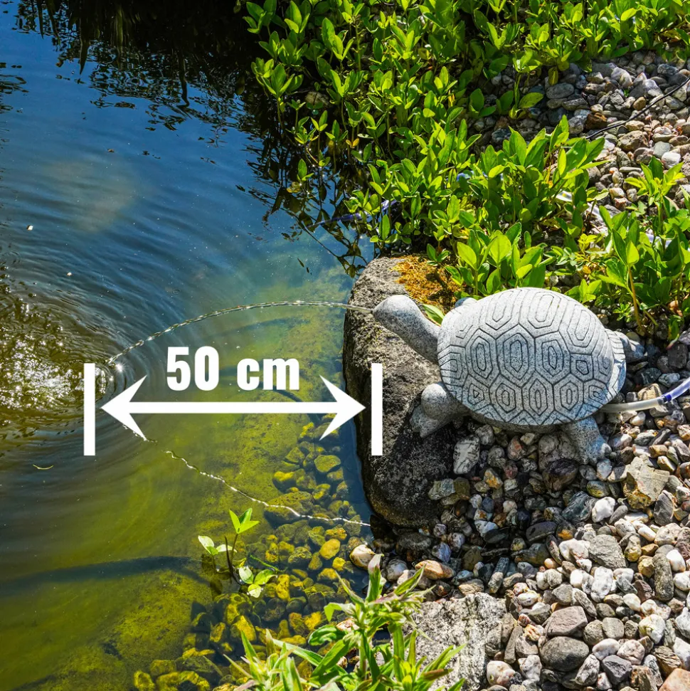 Les tortues ont un excellent sens de l’orientation et sont incroyablement douées pour voir, sentir et entendre. Leur carapace est également une particularité du règne animal. On connaît au total 341 espèces de tortues. Certaines vivent sur la terre ferme, d’autres dans le désert et d’autres encore dans l’eau. Notre tortue au design de pierre presque parfait est fabriquée en polyrésine de haute qualité, de forme très naturelle et enrichit chaque bassin de jardin ou baignoire de petite et moyenne taille. Sa véritable beauté se révèle dès que la pompe commence à fonctionner. Combinée de cette manière, il en résulte une symphonie apaisante de jeux d’eau et votre jardin vous invite à vous détendre ensemble.
