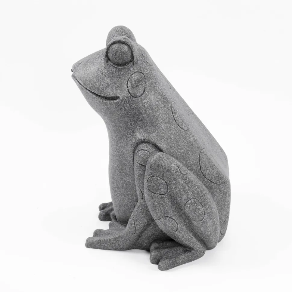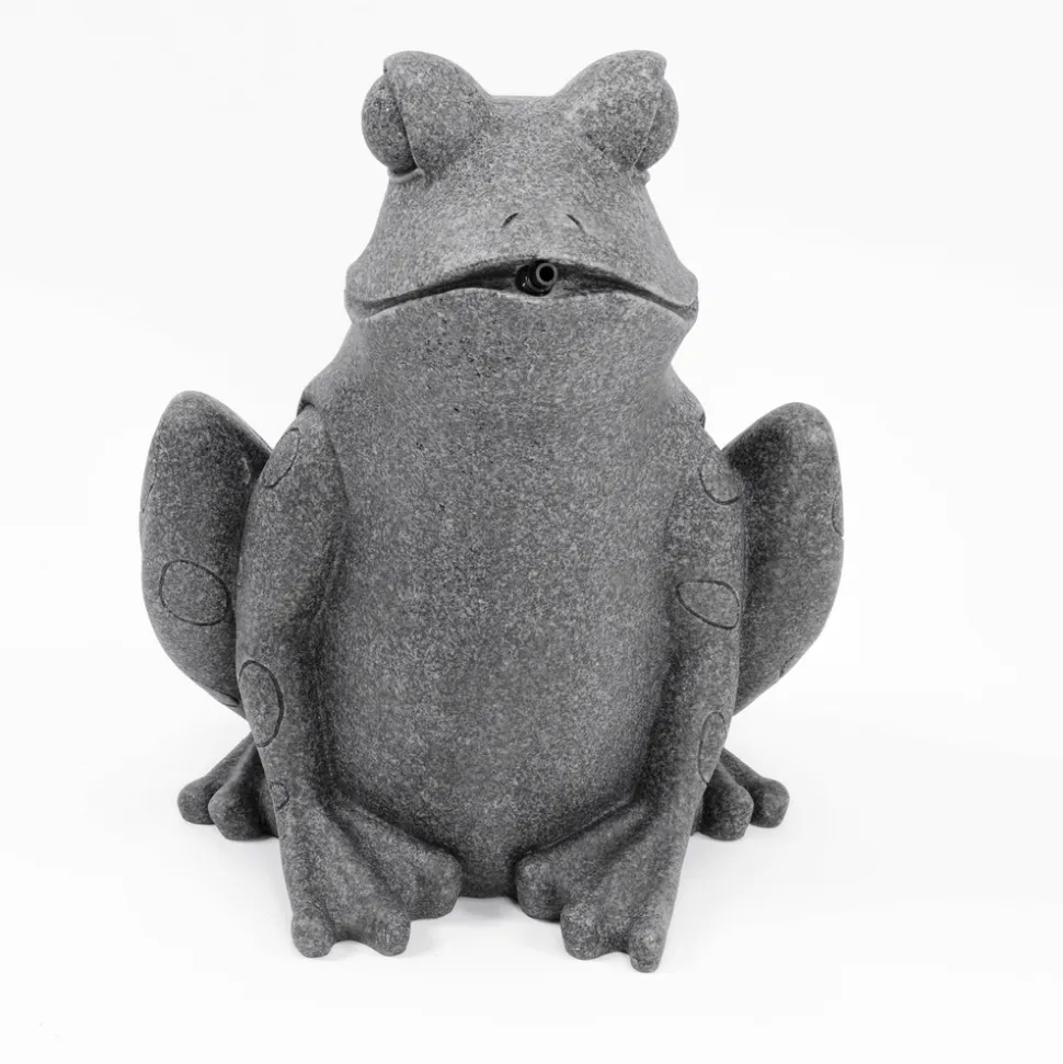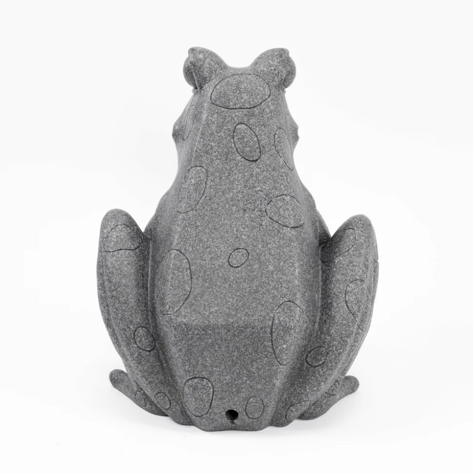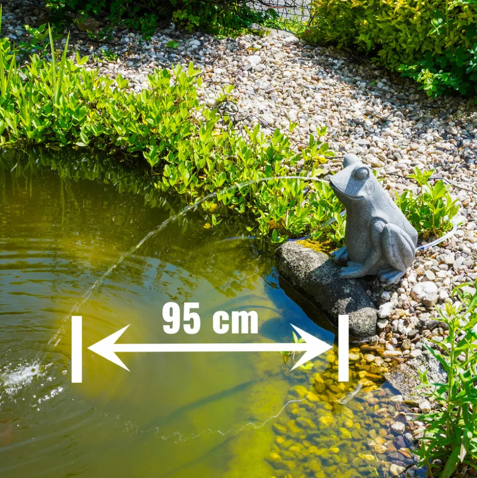 Les grenouilles possèdent généralement une peau humide et lisse, de couleur brune ou verte, mais parfois aussi colorée. Selon la température et l’humeur, certaines espèces peuvent changer de couleur et s’adapter ainsi à leur environnement. Les grenouilles ont un corps arrondi, des pattes arrière longues et puissantes et des pattes avant courtes. Elles sont le symbole de l’étang et de la mare. Notre grenouille au design de pierre presque parfait est fabriquée en polyrésine de haute qualité et a une forme très naturelle. Elle enrichit chaque bassin de jardin ou baignoire de petite et moyenne taille. Sa vraie beauté se révèle dès que la pompe commence à fonctionner. Combiné de cette manière, il en résulte une symphonie apaisante de jeux d’eau et votre jardin vous invite à vous détendre ensemble.