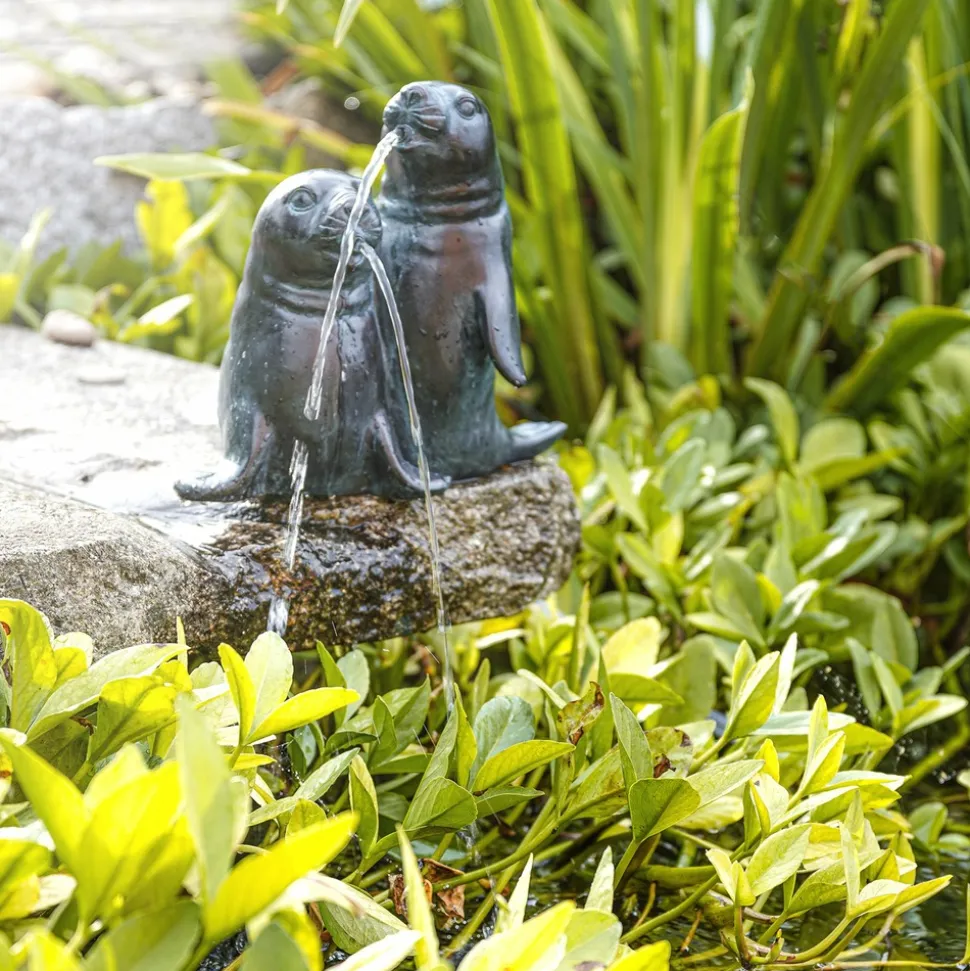 La vraie beauté de nos phoques ne se révèle toutefois que lorsque la pompe se met en marche. Ainsi combinés, ils forment une véritable symphonie de jeux d’eau et votre jardin vous invite à la détente.