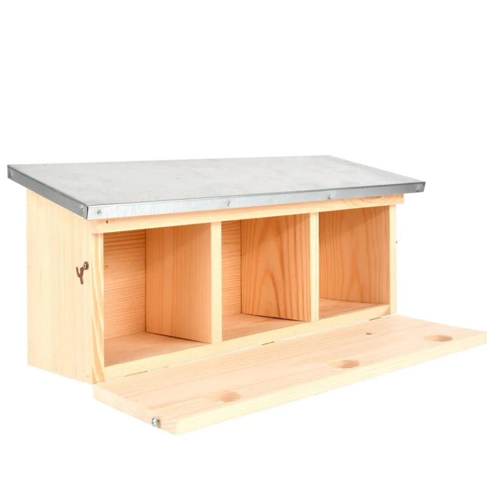 Avec un diamètre d’entrée de 32 mm, ce nichoir fournit aux moineaux un endroit idéal pour établir leur nid. Cet appartement des moineaux possède 3 nids car les moineaux nichent de préférence en groupe. Accrochez votre nichoir dans un lieu calme, un peu à l’abri, et augmentez vos chances d’attirer ces beaux petits oiseaux dans votre jardin pour les faire découvrir à vos enfants !