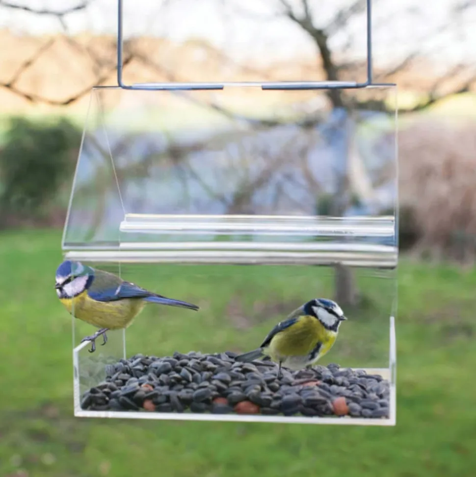 Chaque amoureux d’oiseaux aime regarder les oiseaux mignons manger joyeusement. Offrez un repas aux oiseaux du quartier avec ce distributeur de graines suspendu de la marque Esschert Design ! Fabriqué en matériau transparent, il est possible de regarder les oiseaux profiter de leur nourriture et de surveiller le niveau d’alimentation des oiseaux. Elle a une large ouverture des deux côtés, donc les oiseaux peuvent facilement vous visiter pour une gâterie ou un repos tous les jours. De plus, grâce au crochet attaché, vous pouvez facilement accrocher la mangeoire sur une branche ou un rebord de balcon.