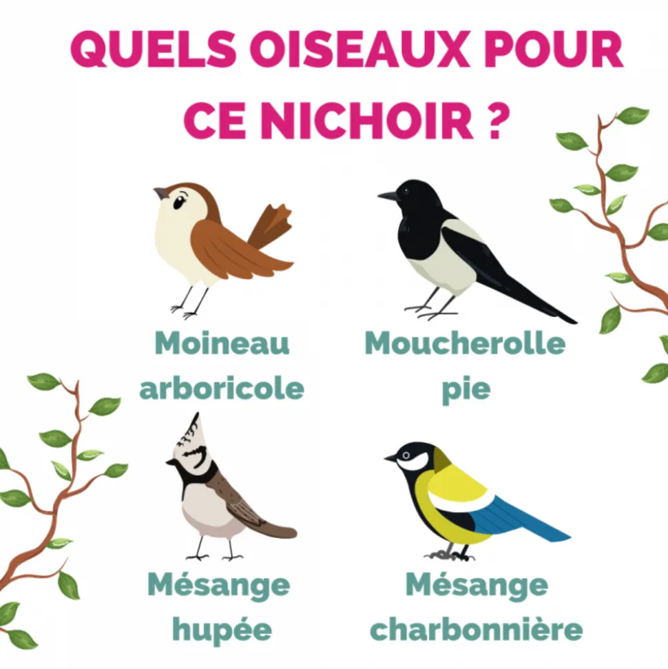 Chaque amoureux d’oiseaux aime regarder les oiseaux mignons. Donnez aux oiseaux du quartier un endroit pour s’installer avec ce nichoir KG52 d’Esschert Design ! Fabriqué en pin, ce nichoir est durable, résistant aux intempéries et peut être utilisé toute l’année. Ce nichoir bricolé est livré avec des clous, un marteau et de la colle à bois et convient aux mésanges, aux moineaux d’arbres et aux gobe-mouches bigarrés. Ne serait-ce pas un bon cadeau pour vos enfants de les laisser entrer en contact avec la nature et les oiseaux ? Vos enfants apprécieront de construire et de décorer notre nichoir d’oiseaux. L’endroit idéal pour accrocher cette boîte de nidification est un endroit calme, isolé et ombragé.