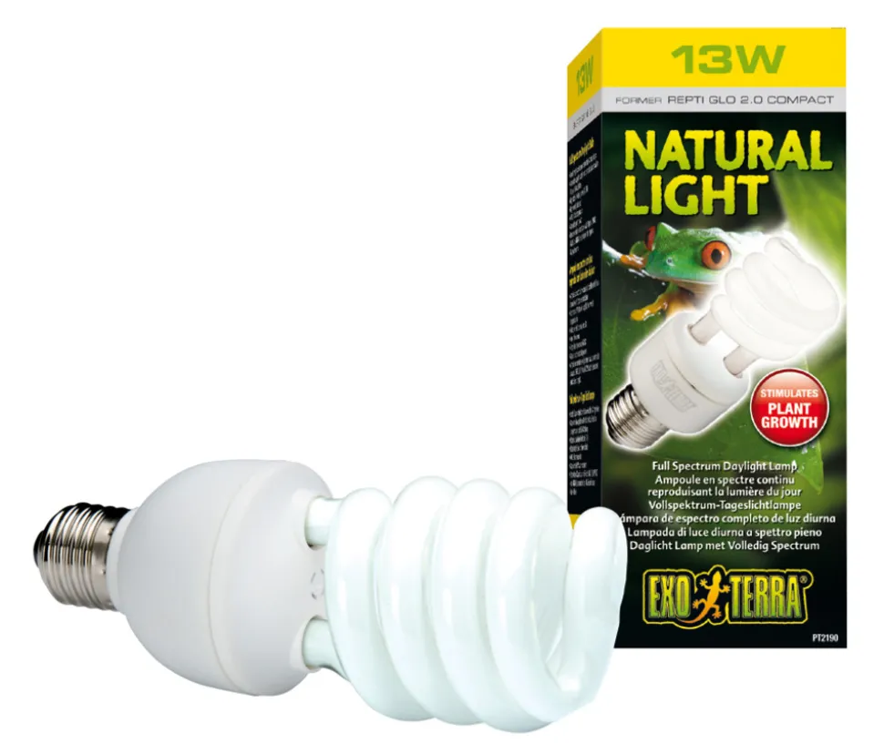 L?ampoule Natural Light Exo Terra est une ampoule en spectre continu reproduisant la lumière du jour au flux lumineux et à indice de rendu des couleurs (98) très élevés.